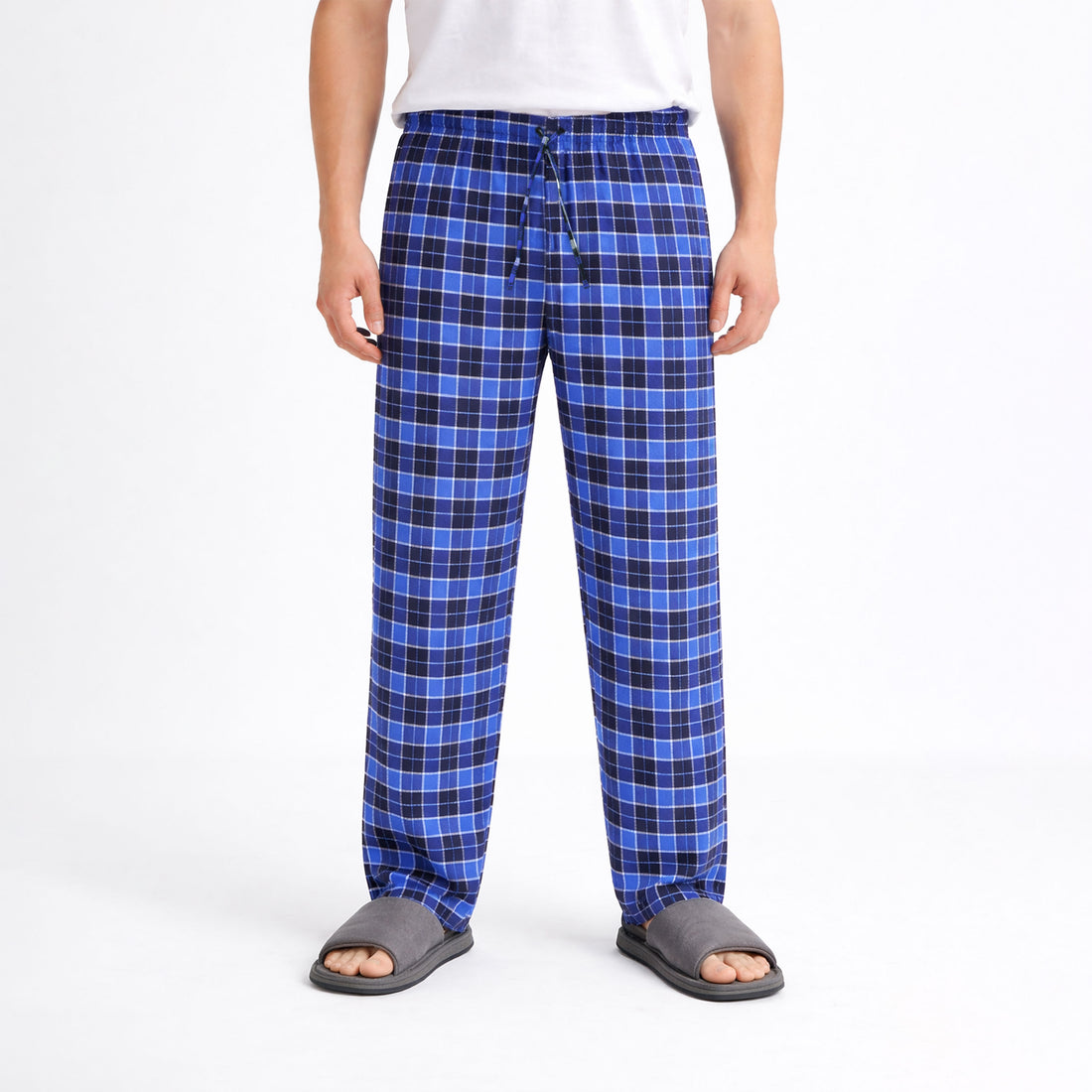 Men's Royal Blue White Plaid Flannel Pants