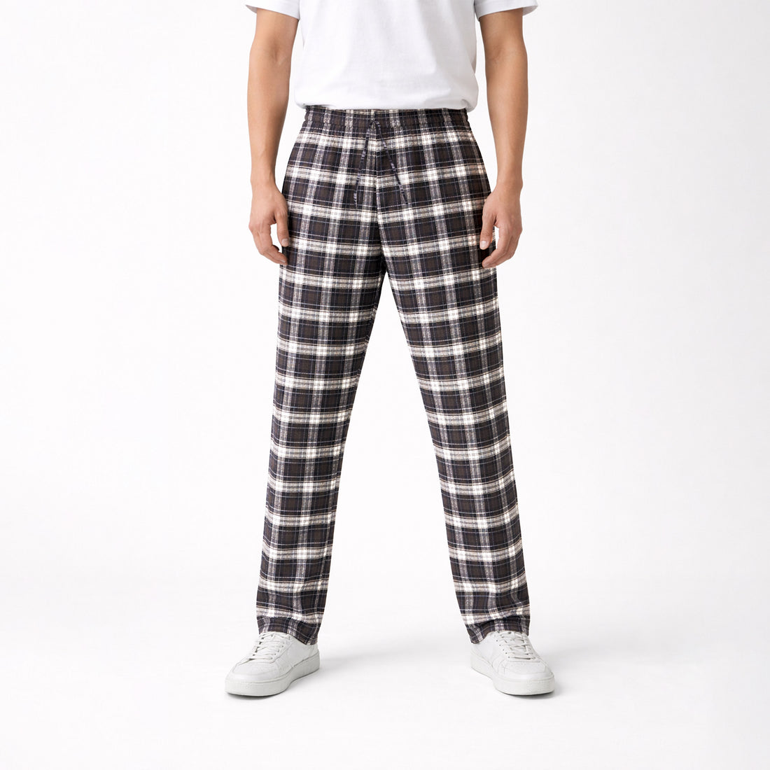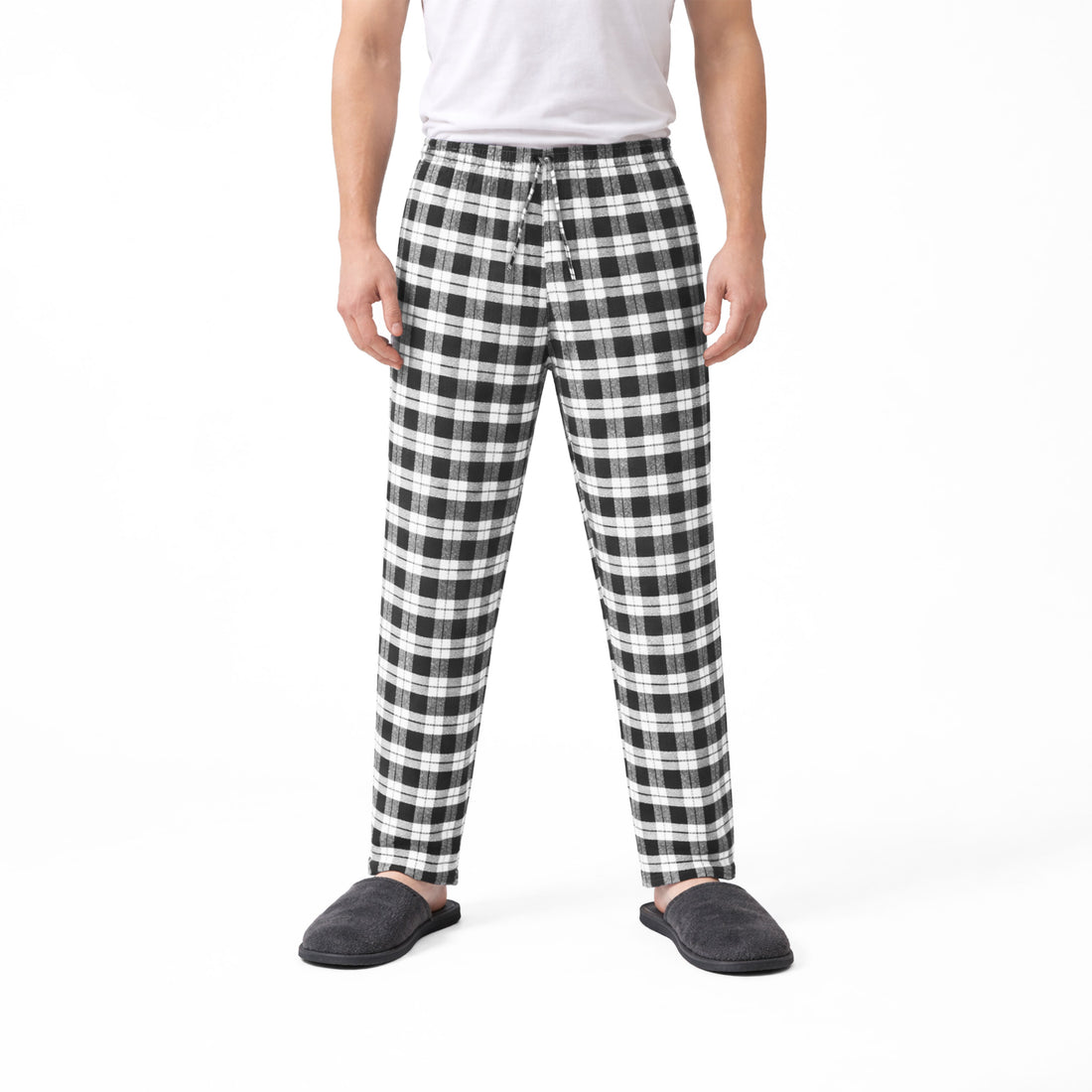 Men's White Black Plaid Flannel Pants