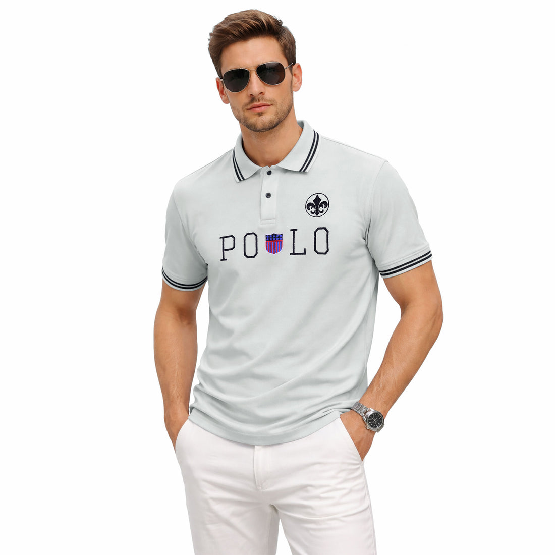 Men’s Light Grey Classic Polo Shirt VL Embroidered Logo