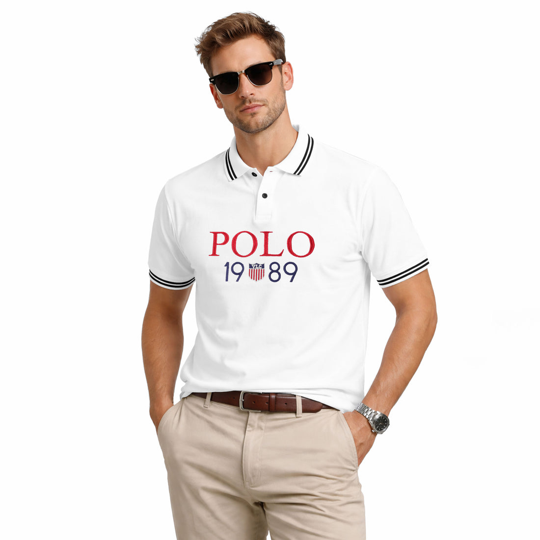Men’s Classic White Polo Shirt 1989 Heritage Embroidered Logo