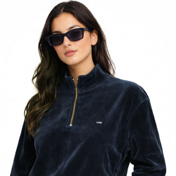 Women Velour Half-Zip with Metal Badge Pullover Sweatshirt