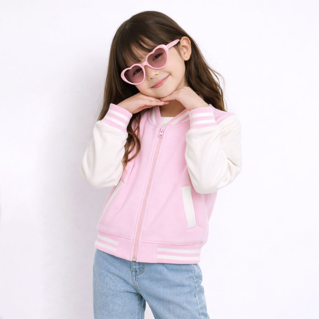 Slam dunk style with this vibrant pink varsity baseball jacket! Perfect for young trendsetters, this...
