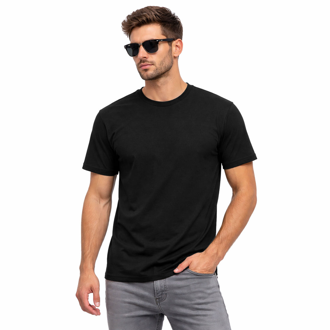 Elevate your basics with this timeless black crew neck tee—the ultimate wardrobe MVP that pairs...