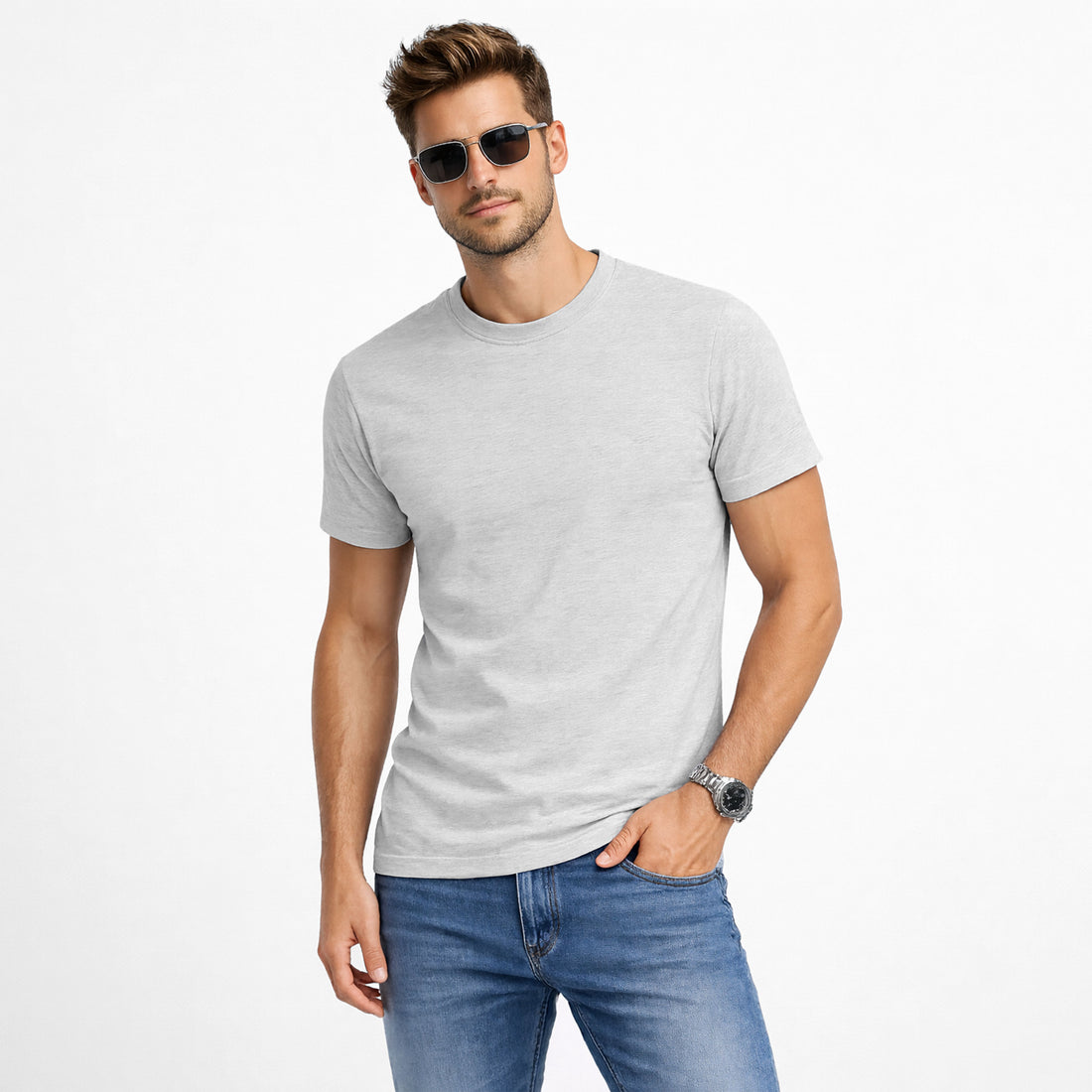 Step into comfort with our Men's Grey Crew Neck T-Shirt – the ultimate wardrobe essential...
