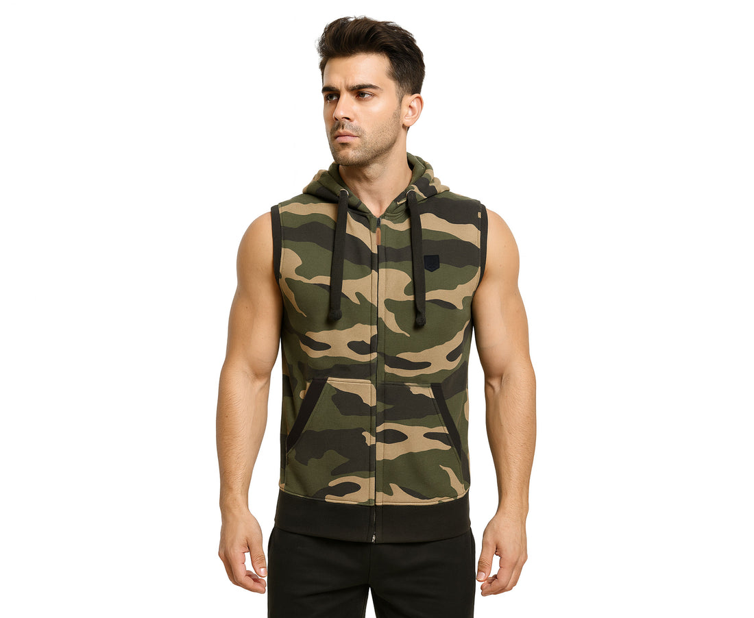 Camouflage Fashionable Stylish Sleeveless Zipper Hoodies