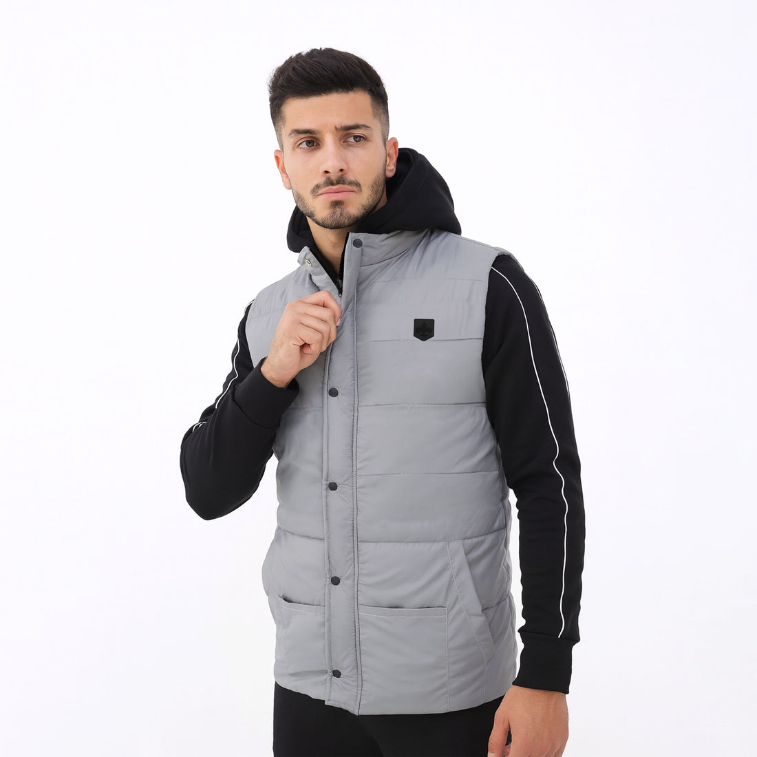 Men’s Sleeveless Grey Zippered Puffer Jacket