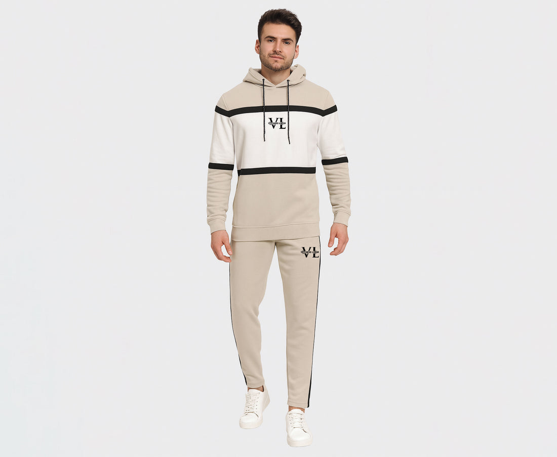 Zipper Hoodie Tracksuit with 2-Panel Stripe & VL Embroidered