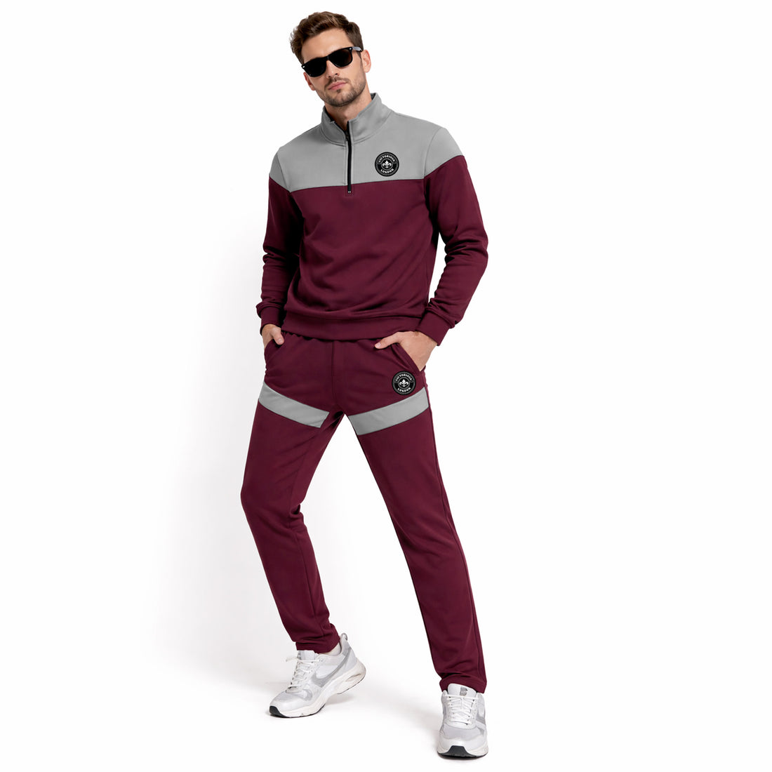 Men’s Maroon Zip-Up Embroidered Hoodie