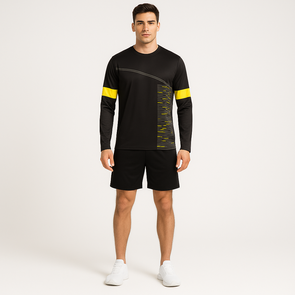 MEN POLYESTER BLACK AND YELLOW SPORTS SHORT TRACK SUIT