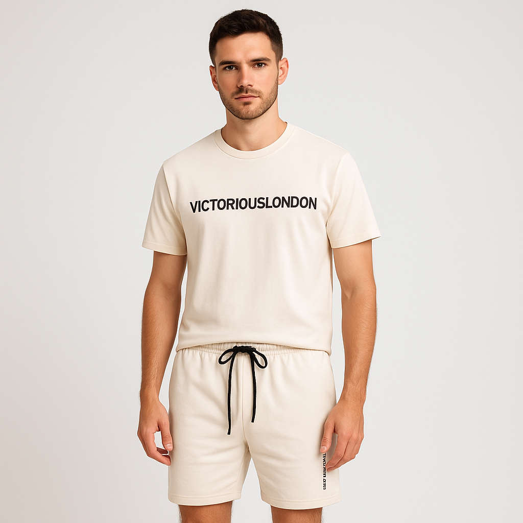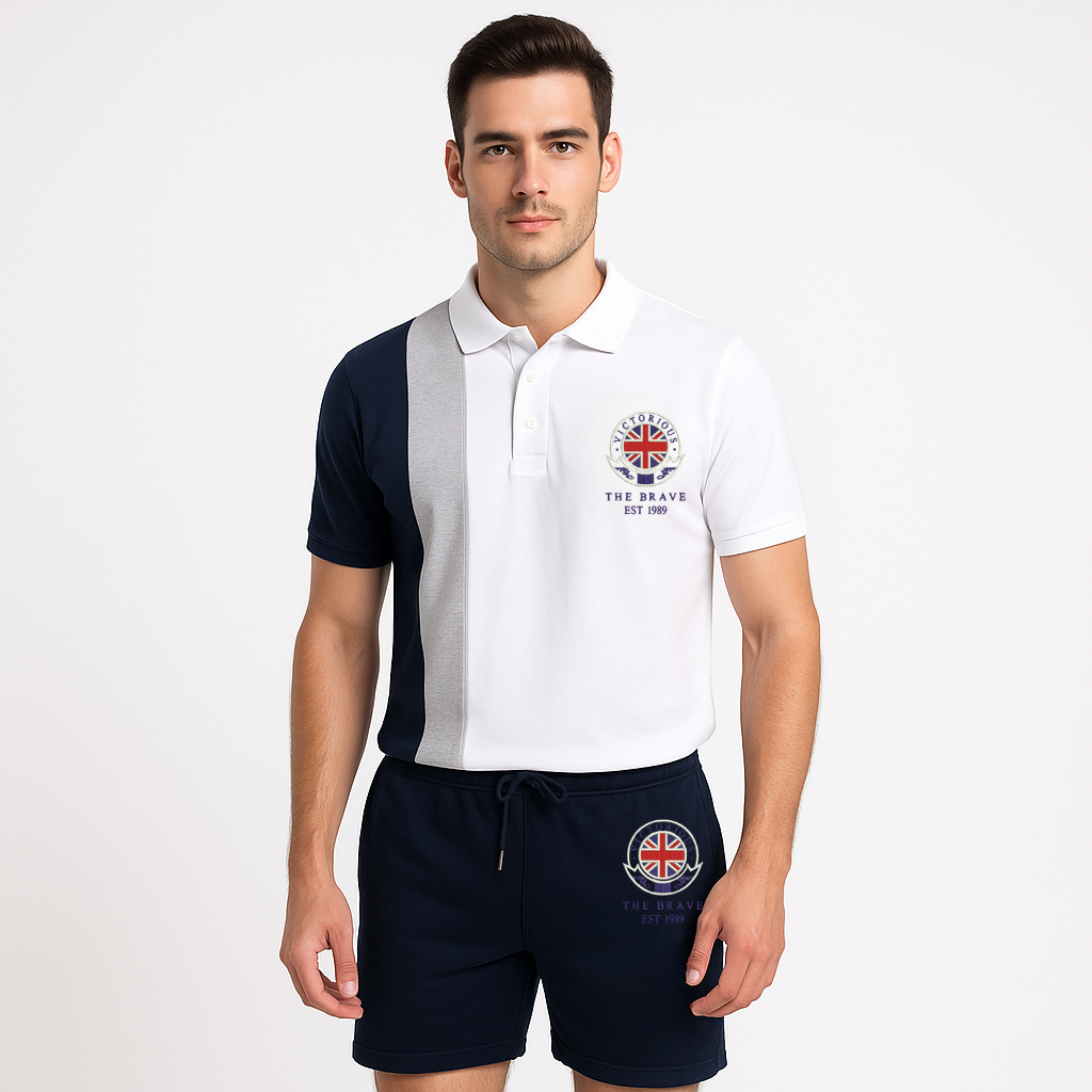 VICTORIOUS THE BRAVE EST 1989 3 PANEL SHIRT WITH NAVY SHORT TRACKSUIT