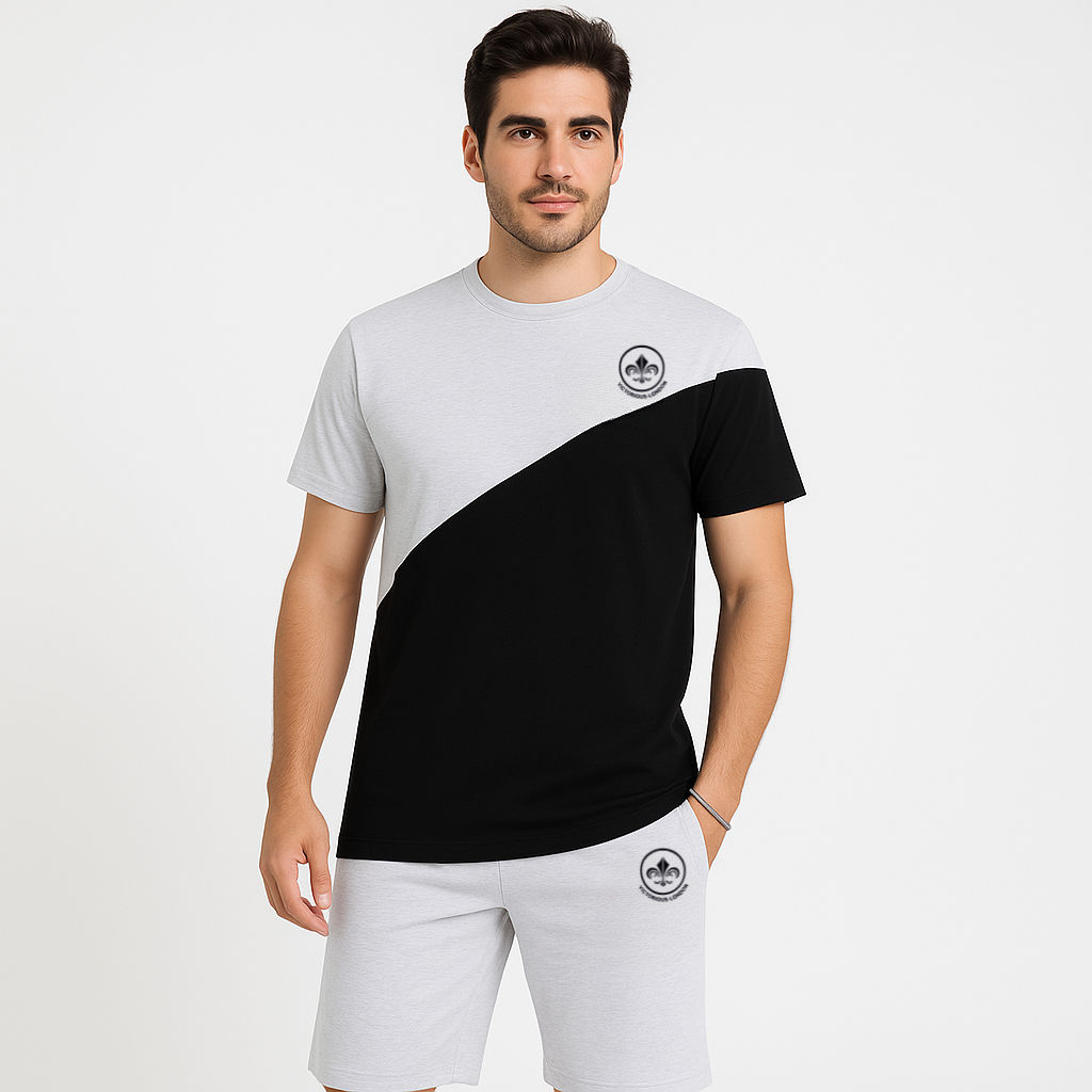 BLACK & GREY 2 PANEL SUMMER SHORT TRACKSUIT