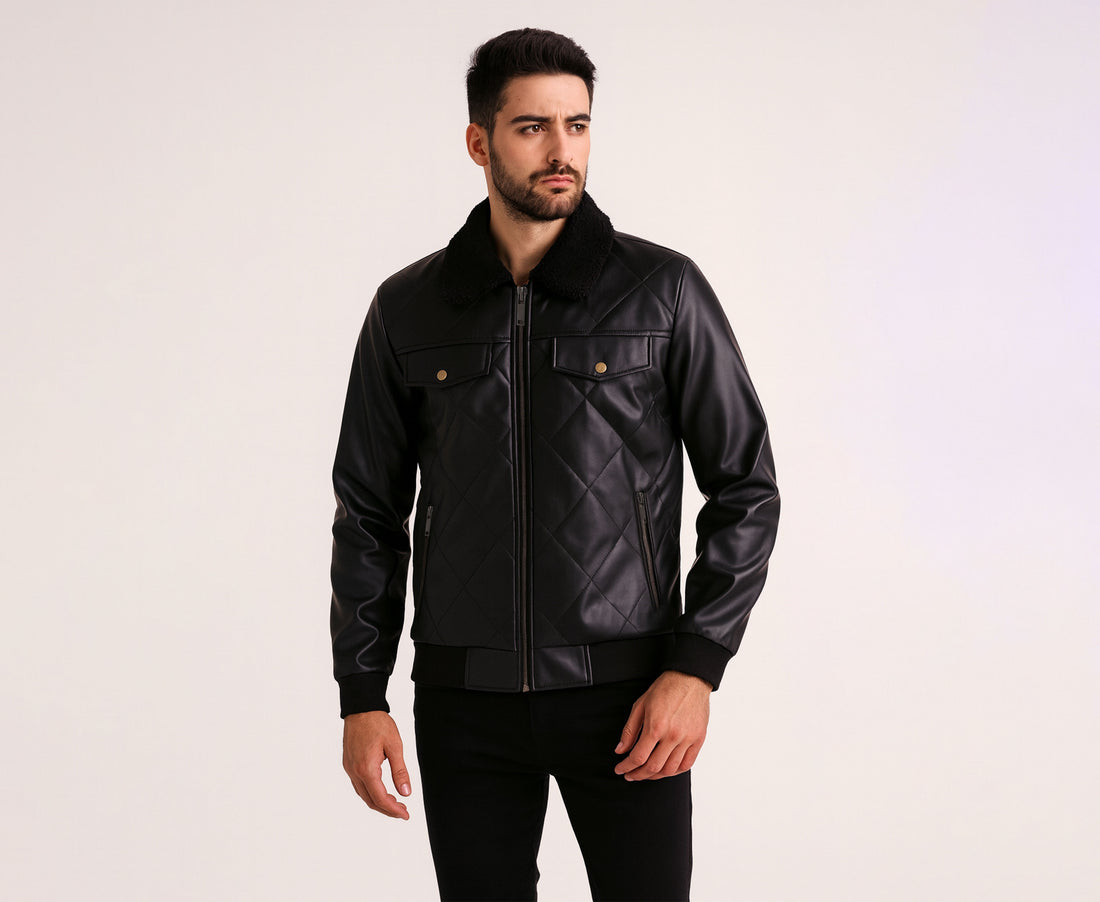 Step out in style with this sleek Men’s Black Leather Jacket featuring a smooth zipper...