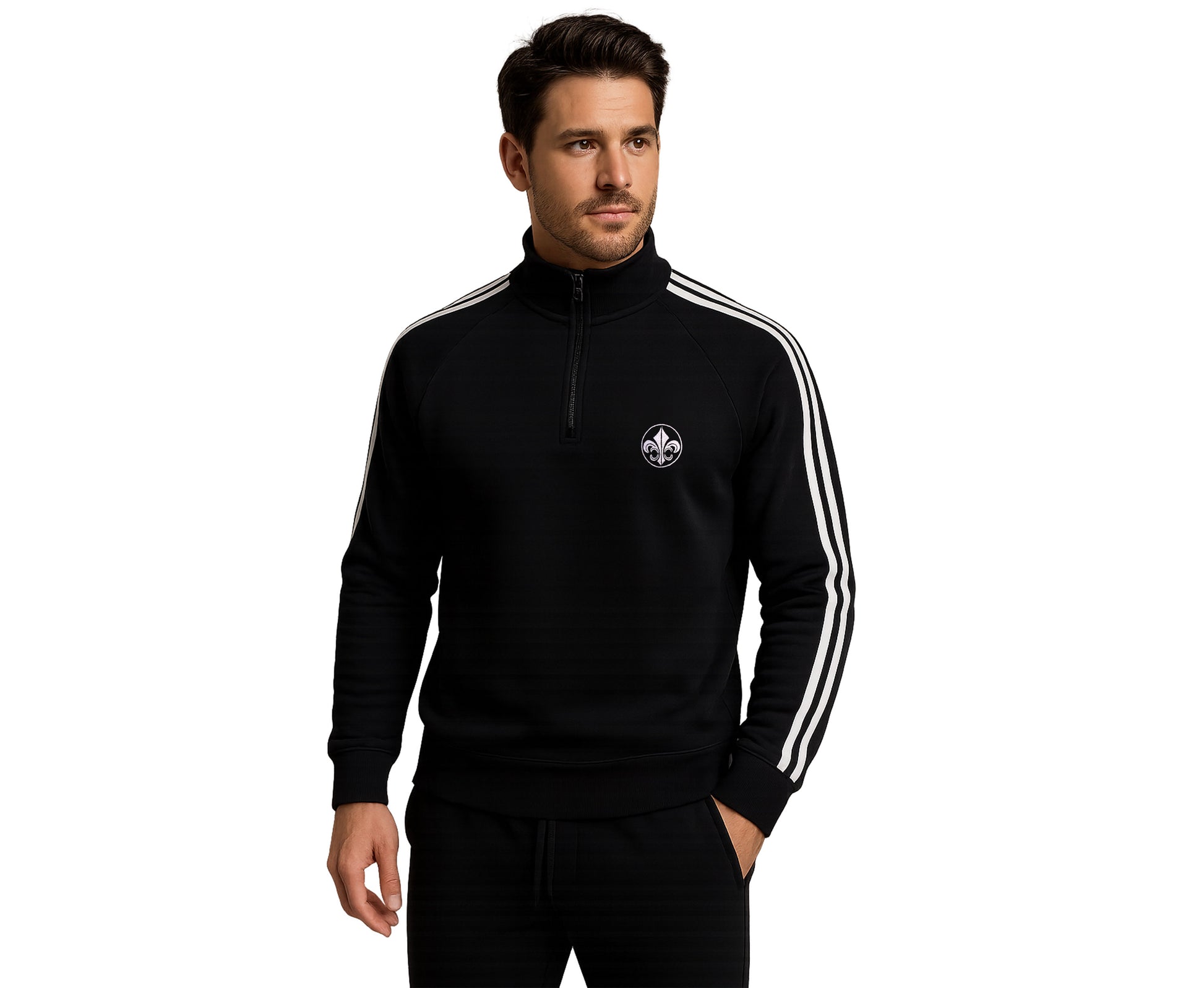 Step into cozy cool with this Half-Zip 3-Stripe Sweatshirt, featuring bold stripes and a fun round VL logo embroidery. Perfect for layering or lounging, its half-zip design lets you dial your comfort up or down. Add a splash of sporty style to your wardrobe and show off your playful side with every wear.