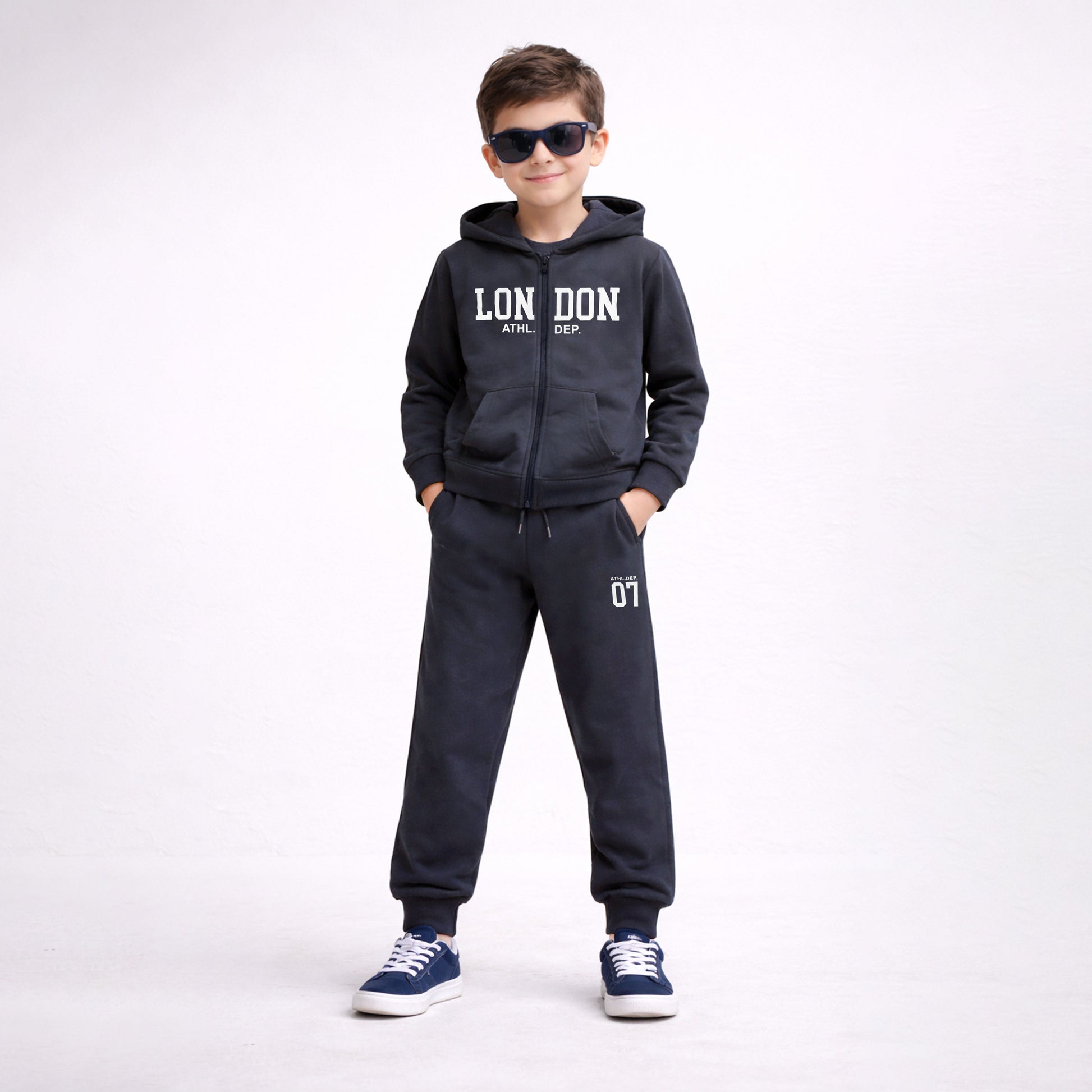 Kids London Printed Zipper Hood With Printed Trouser Twinset Let your little one rock a fun, coordinated look with this vibrant twinset! Featuring a cozy zipper hood and matching printed trousers, both adorned with eye-catching London-inspired designs, this set brings style and comfort together. Perfect for playdates, casual outings, or lounging at home, the soft fabric keeps kids comfy all day long. Mix-and-match ready, this playful duo makes getting dressed an adventure!