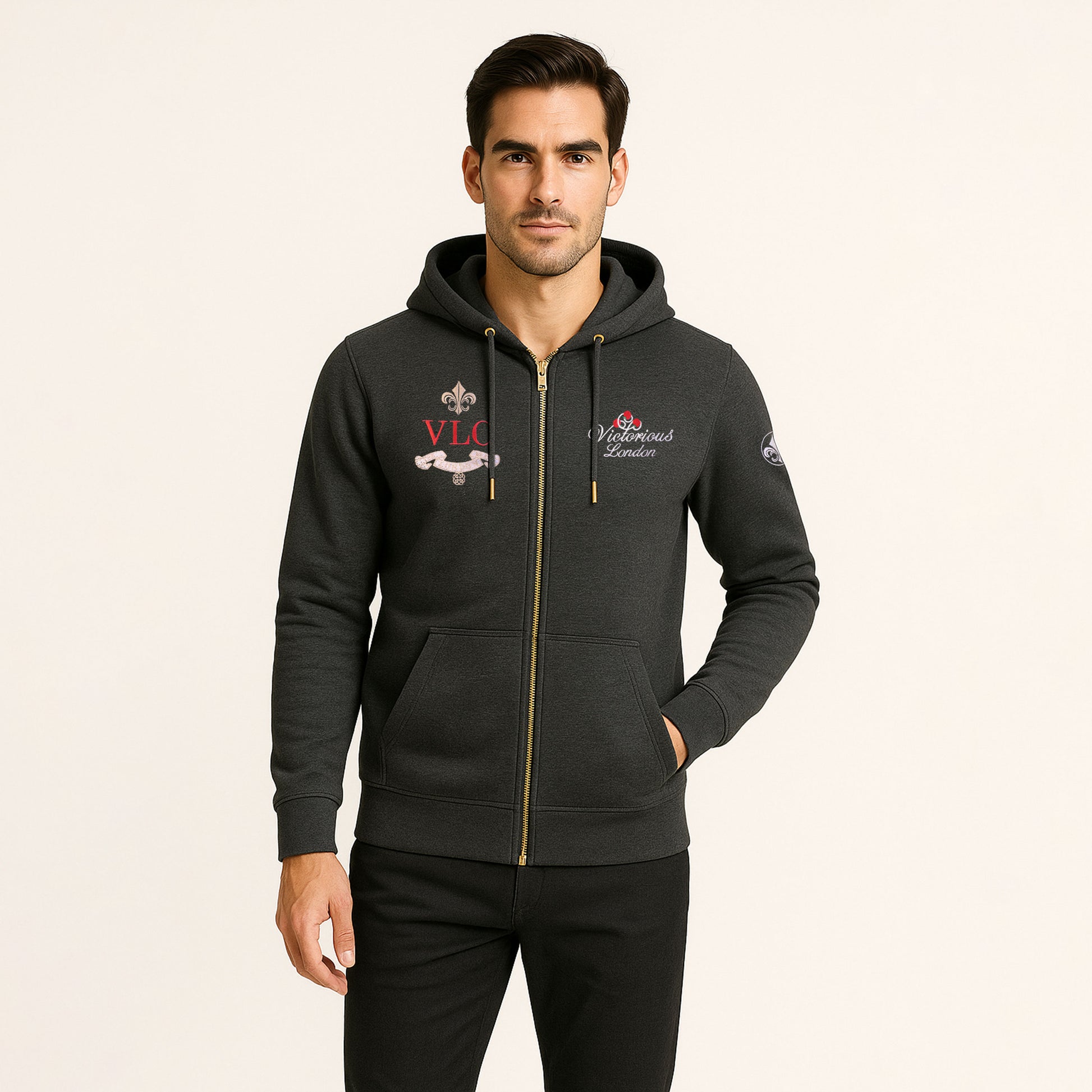 Men’s Charcoal Zip-Up Embroidered Hoodie