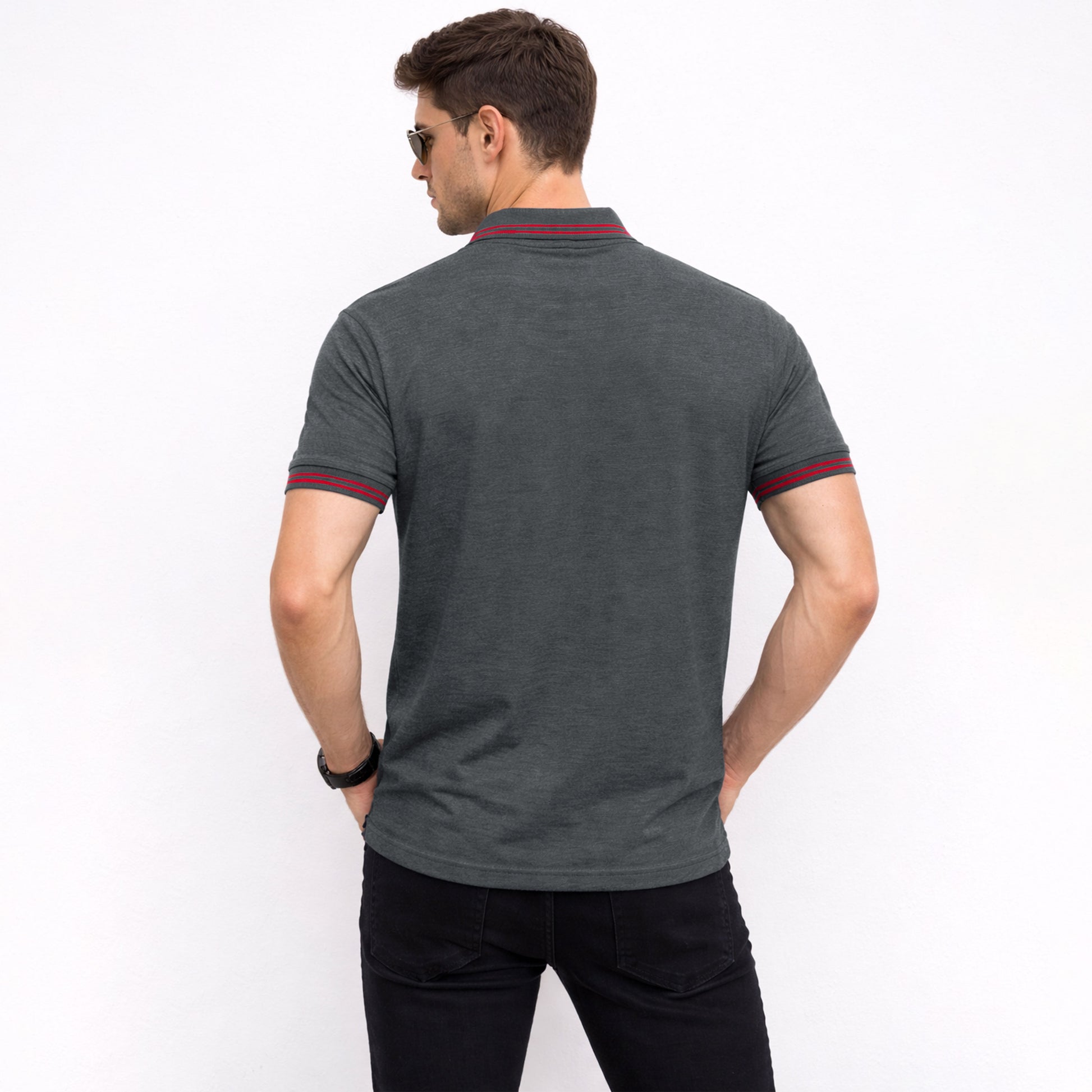 Elevate your casual wardrobe with this sharp men's charcoal polo featuring striking red detailing that adds contemporary flair. The "1989" sport vibe brings retro-inspired style perfect for weekend outings, casual gatherings, or layering under jackets. Crafted for comfort and versatility, this polo transitions seamlessly from relaxed afternoons to smart-casual occasions. The classic color combination ensures easy pairing with your existing pieces while making a confident style statement.