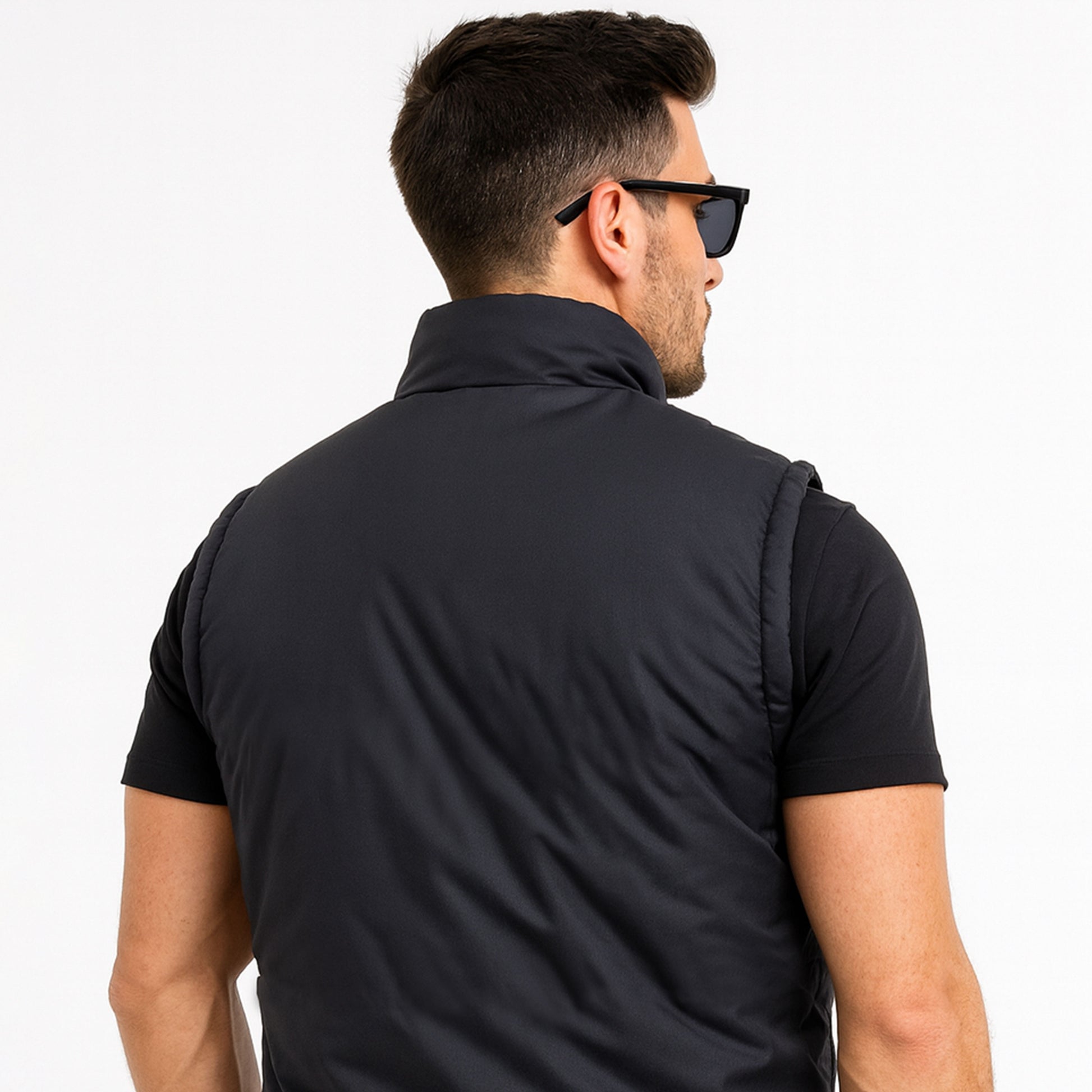 Stay warm without the bulk! This sleek men's sleeveless puffer jacket combines black and grey paneling for a sharp, modern look. The full-length zipper makes layering effortless, while premium puffing keeps you cozy on chilly days. Perfect for throwing over your favorite tee or hoodie, it's the ultimate versatile piece for any season. Lightweight enough to pack, bold enough to stand out.