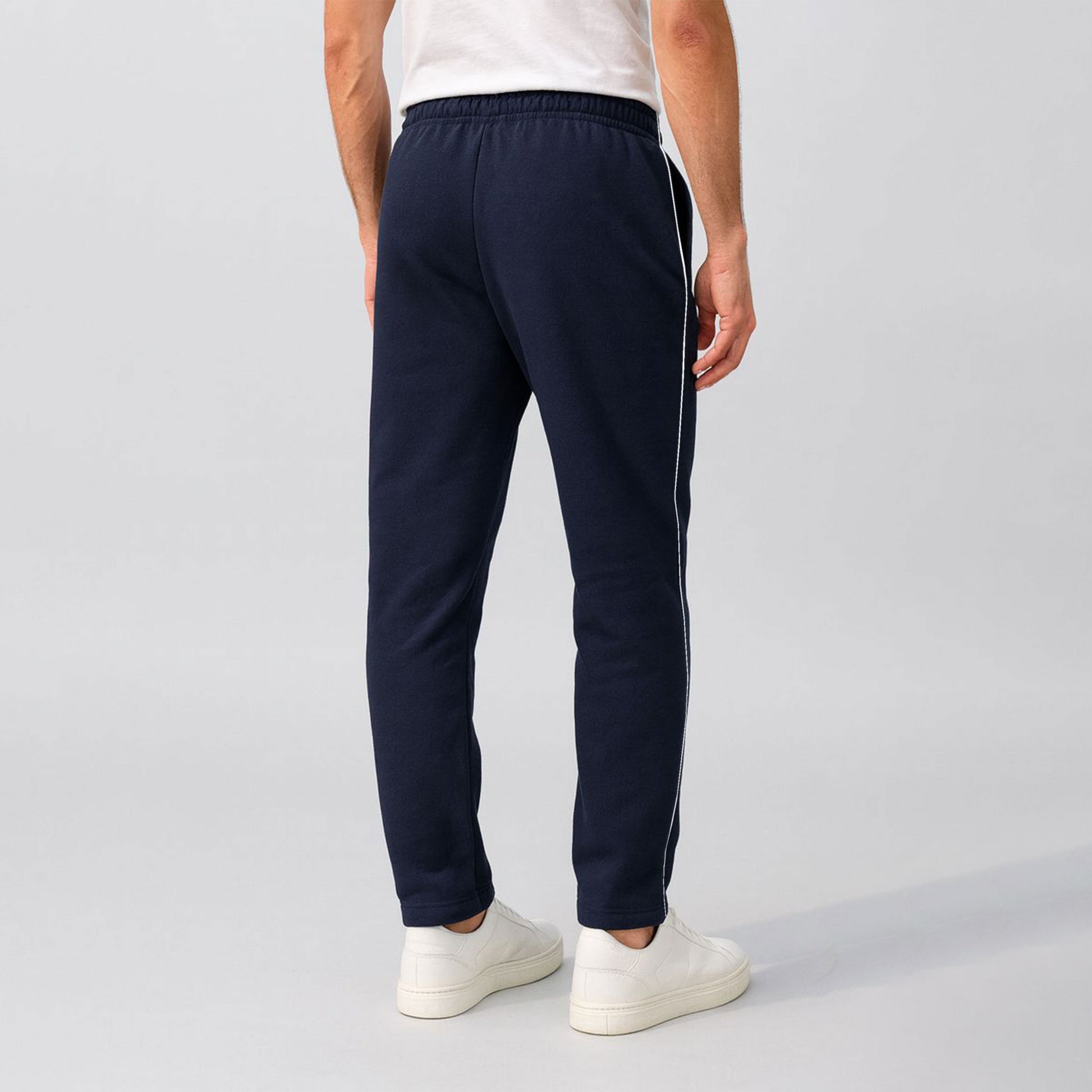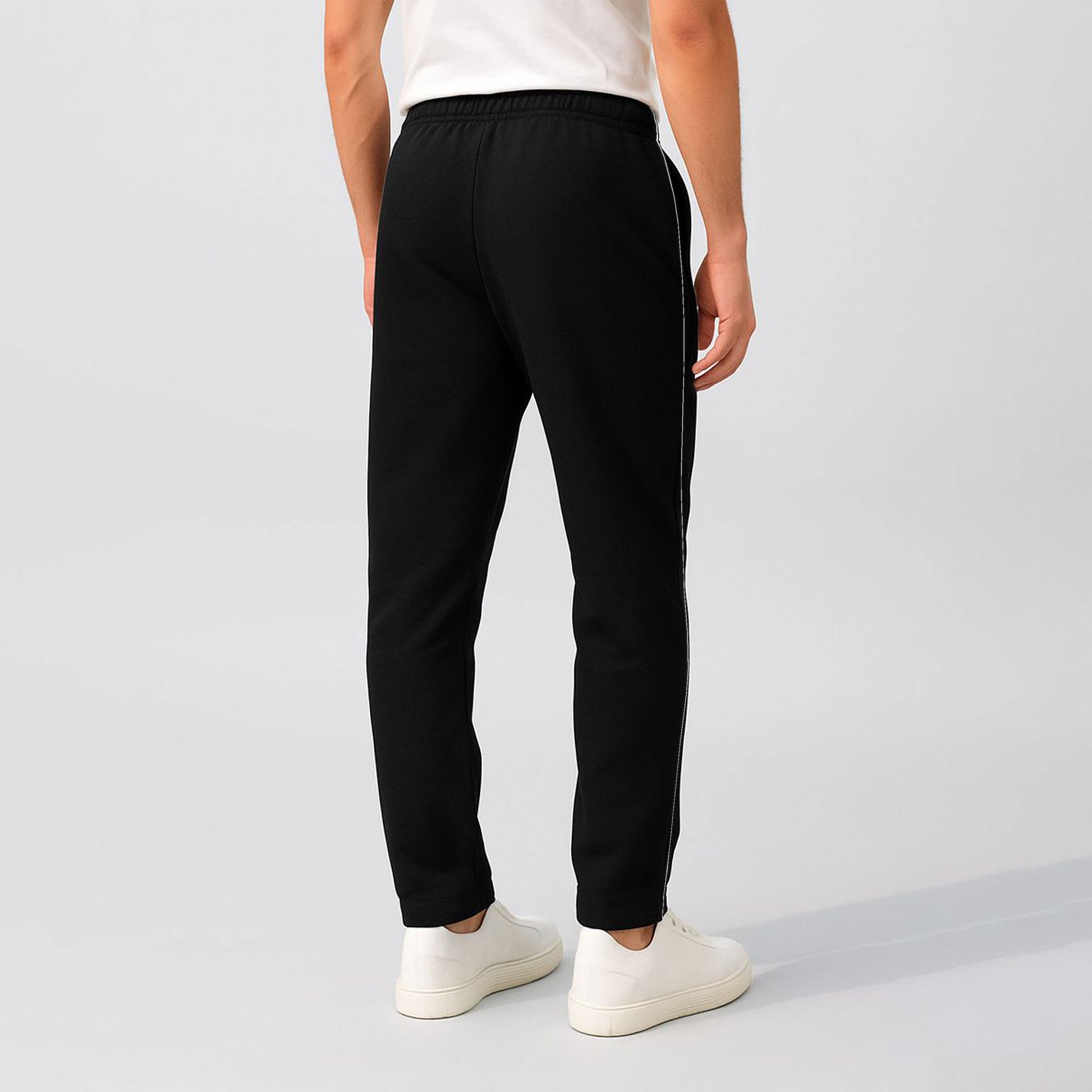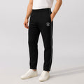 Step up your casual game with these sleek Men's Slim-Fit Track Pants. Designed for the modern guy who refuses to compromise on style, these pants feature sharp side piping that adds an edgy contrast and a signature round logo badge that screams confidence. The tailored slim fit hugs your frame just right—comfortable enough for lounging, sharp enough for the streets. Whether you're hitting the gym, grabbing coffee, or just vibing with friends, these black beauties are your go-to move. Comfort meets cool in one killer package.