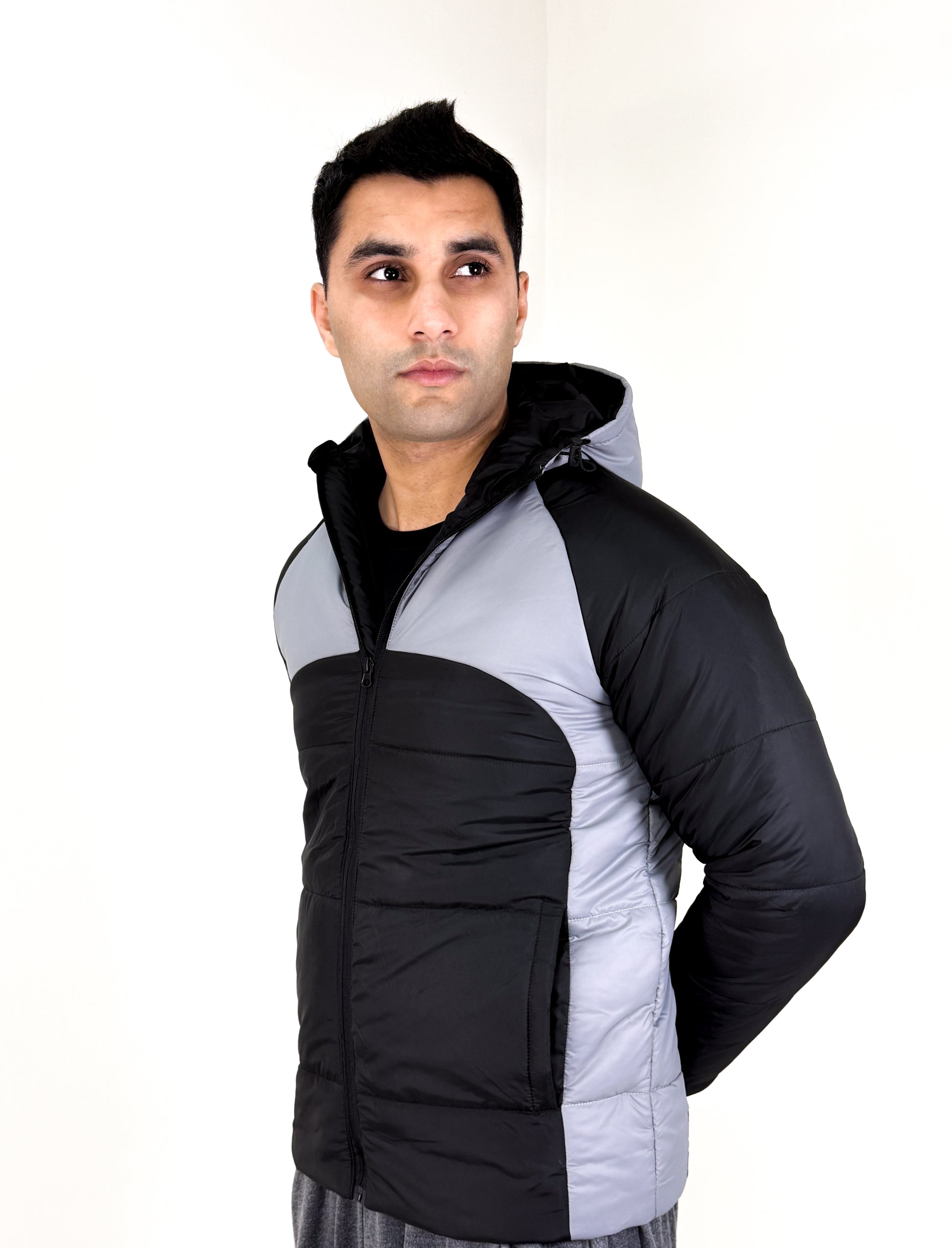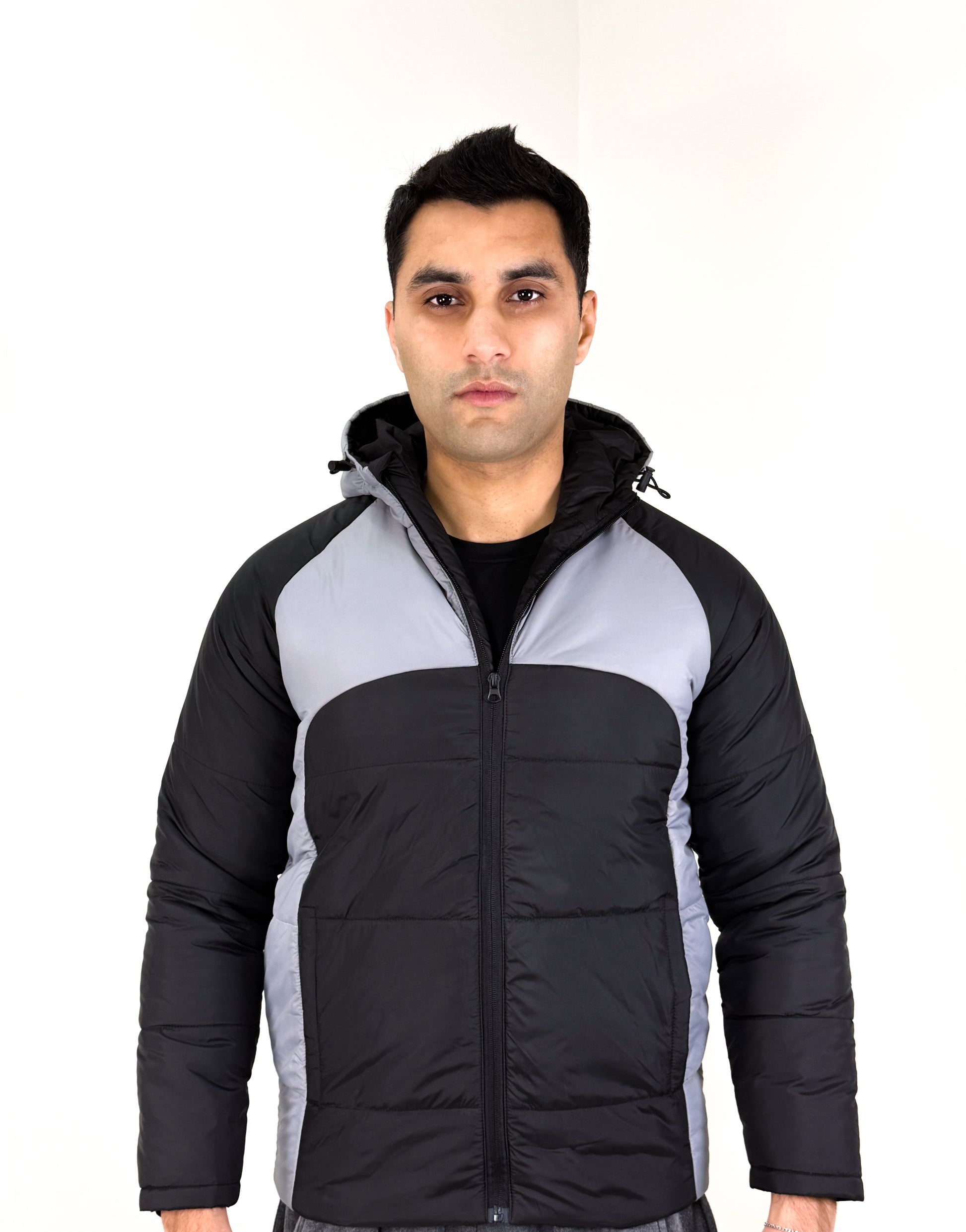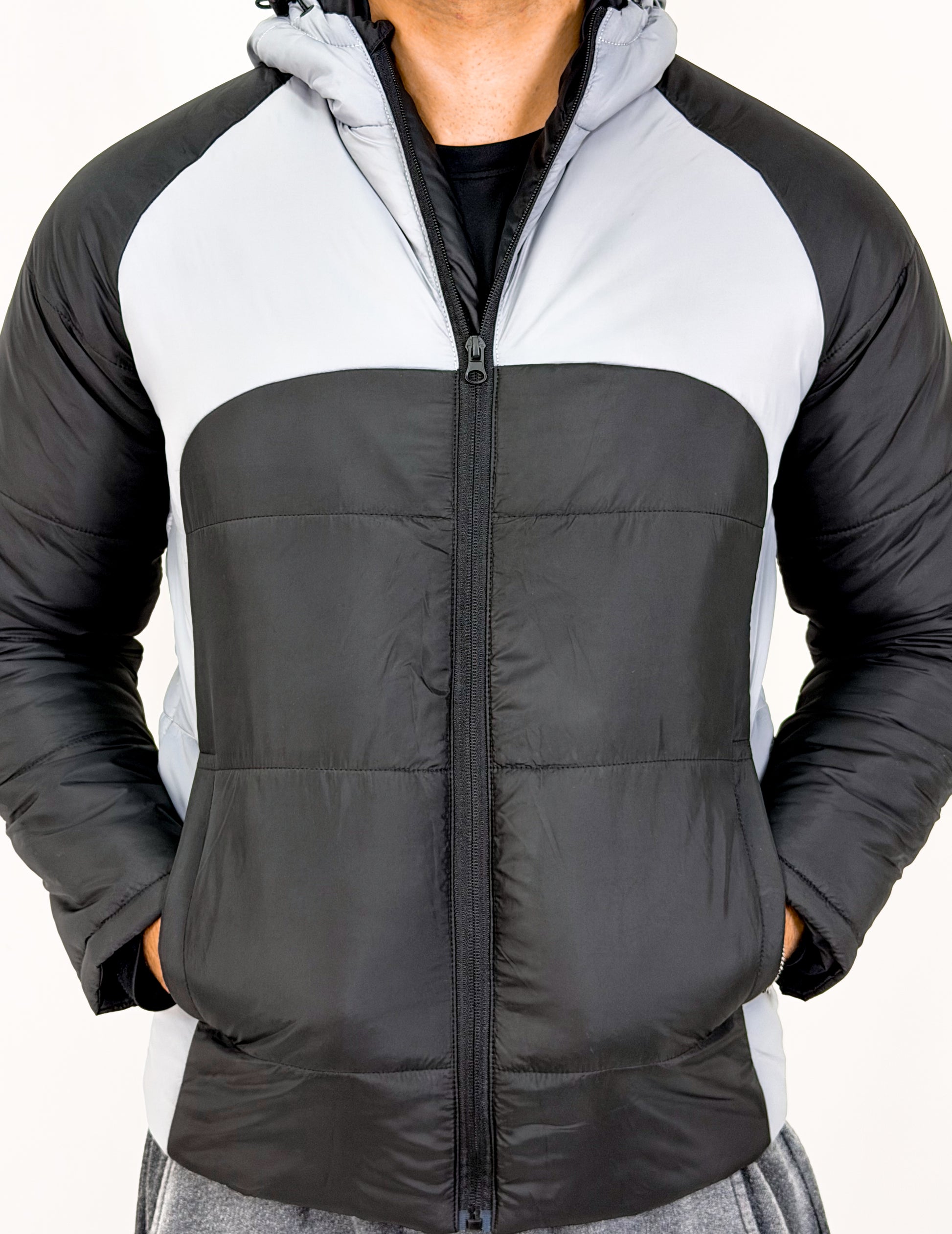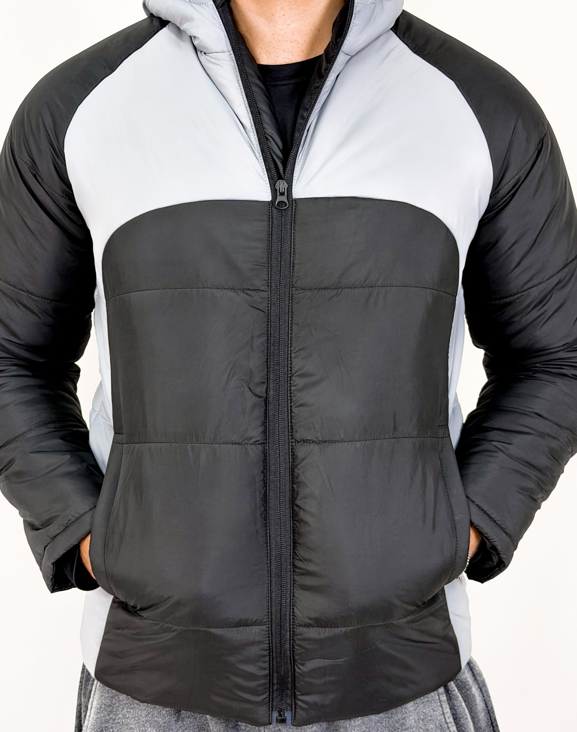 Men’s Two-Panel Gray & Black Puffer Jacket