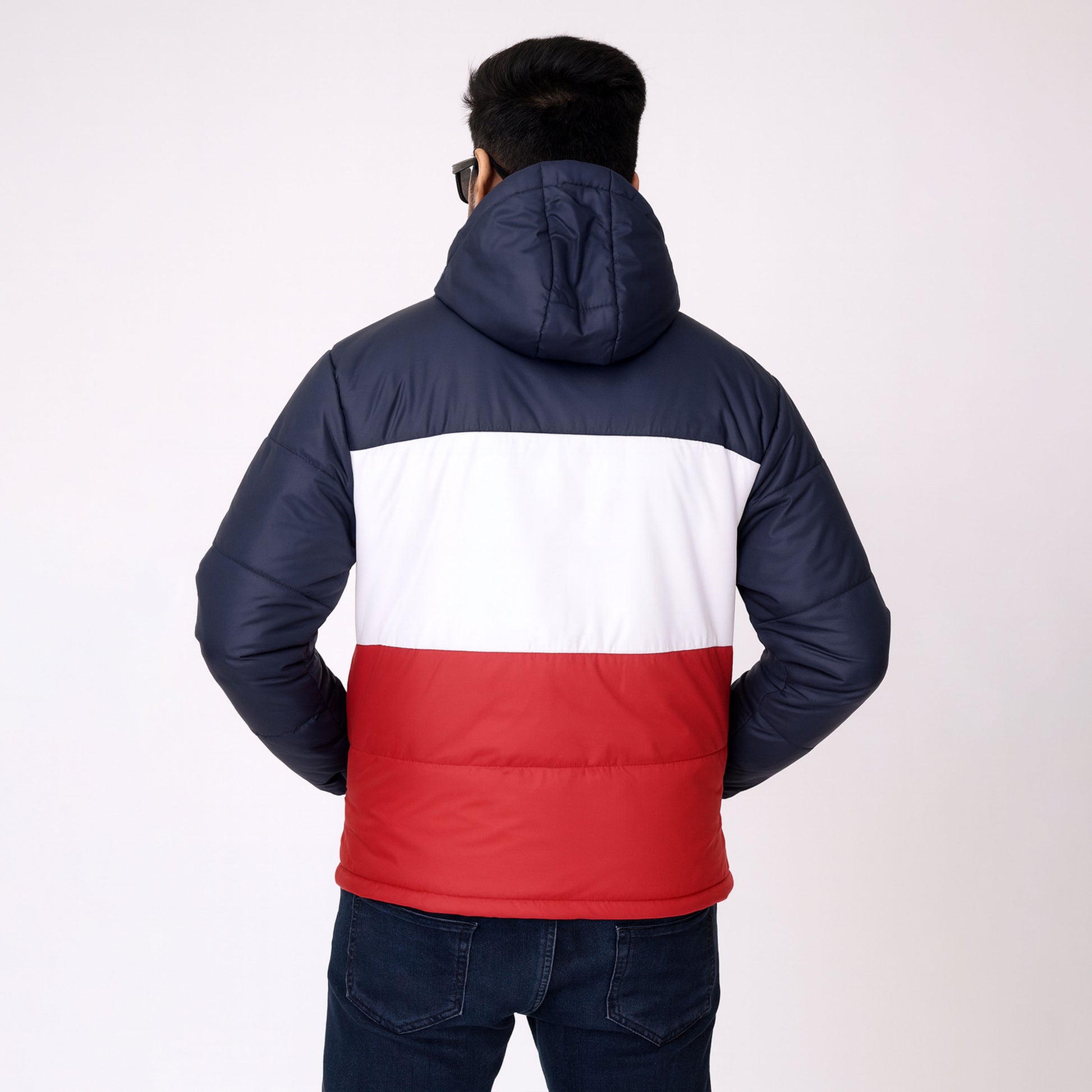 Men's Contrast 3 panel Zip-Up Hood Puffer jacket