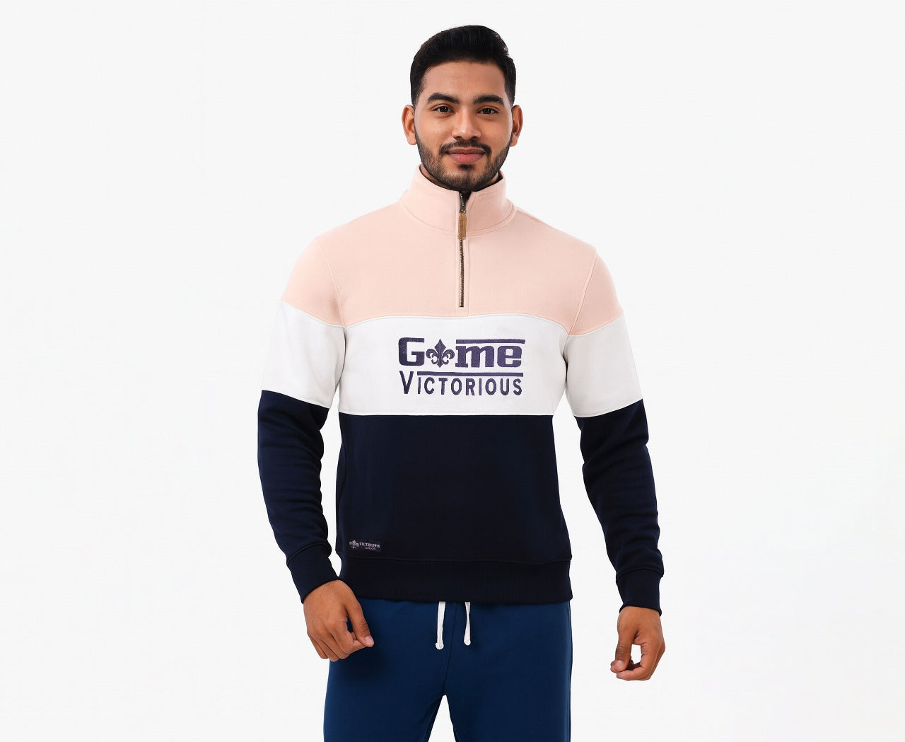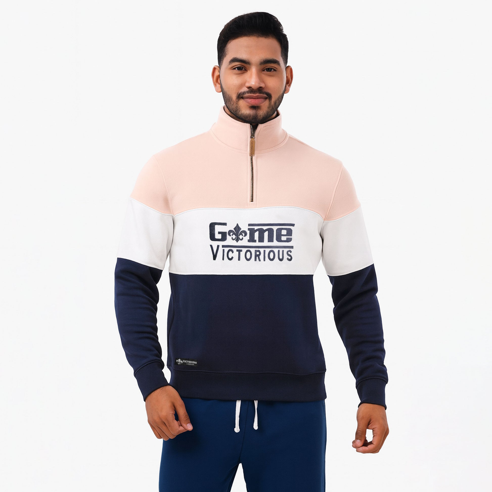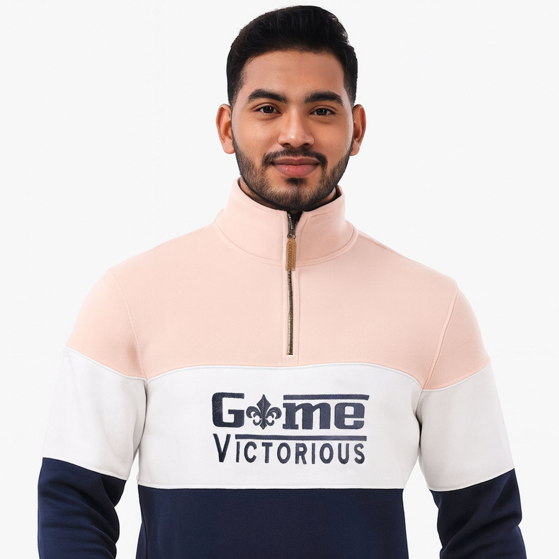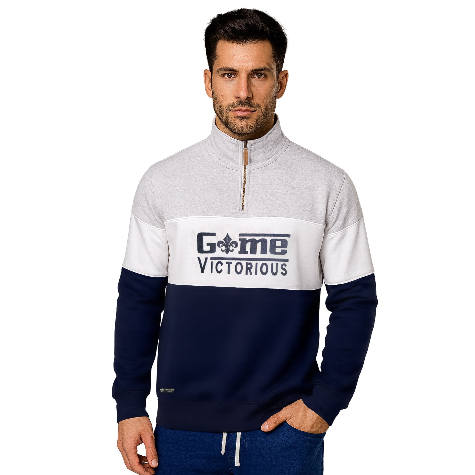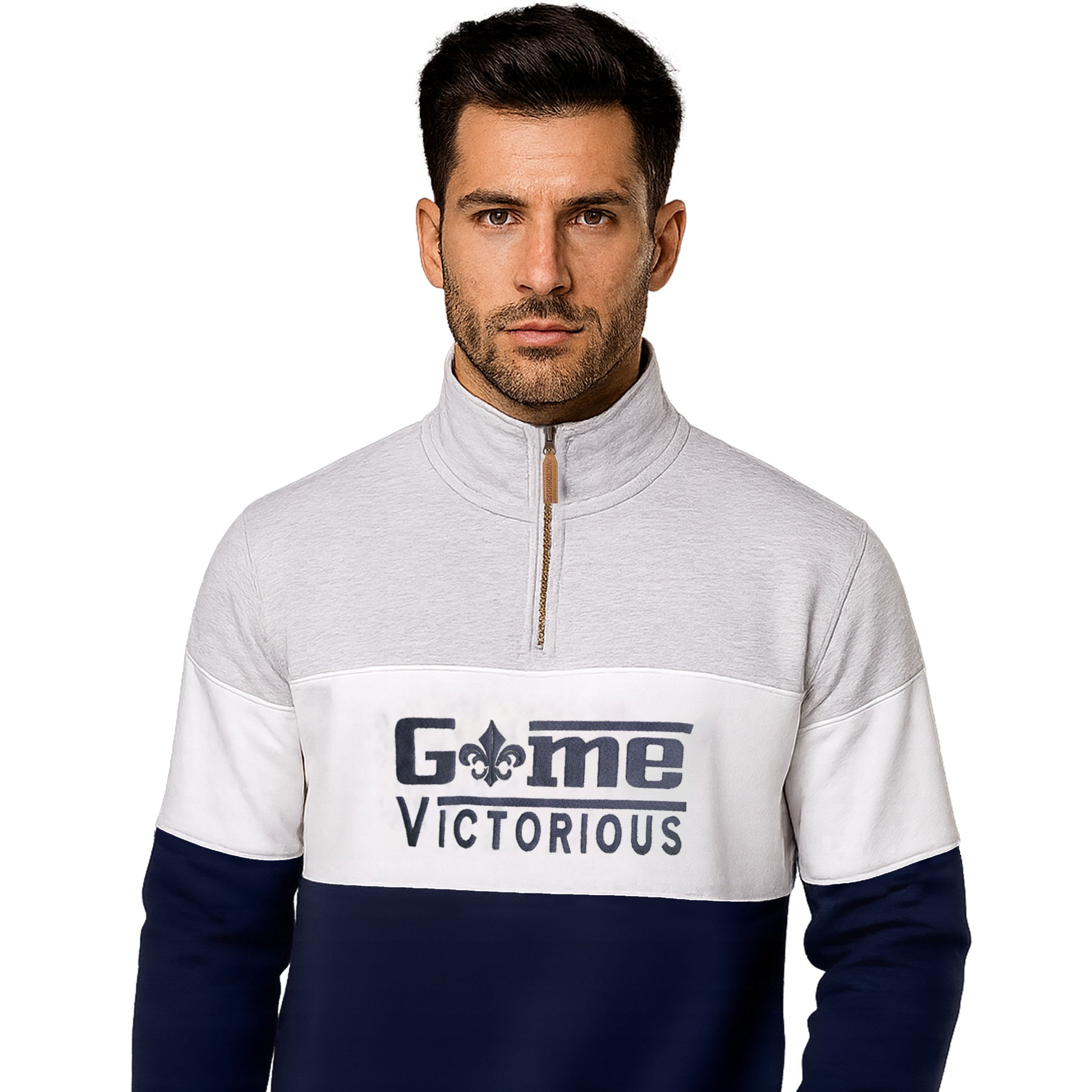 Men's Half Zip Collar 3 Panel Game Embroidered Sweatshirt