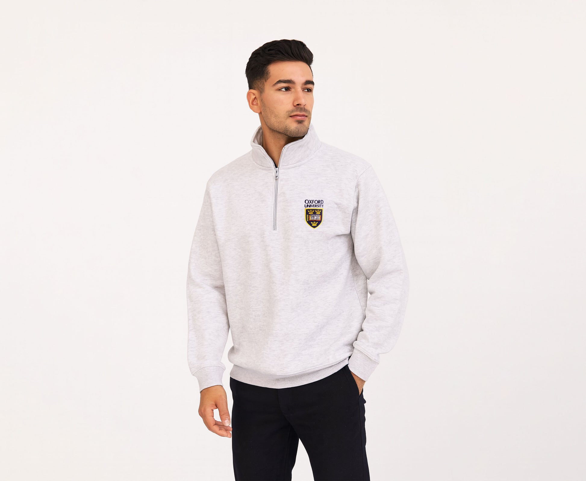 Stay sharp and cozy in this Men's Half Zip Oxford University Sweatshirt, featuring a smart embroidered collar for that extra touch of class. Perfect for those days when you want to look effortlessly cool while keeping comfy. Zip it up or let loose—either way, you’re set to impress with a playful nod to timeless university style.