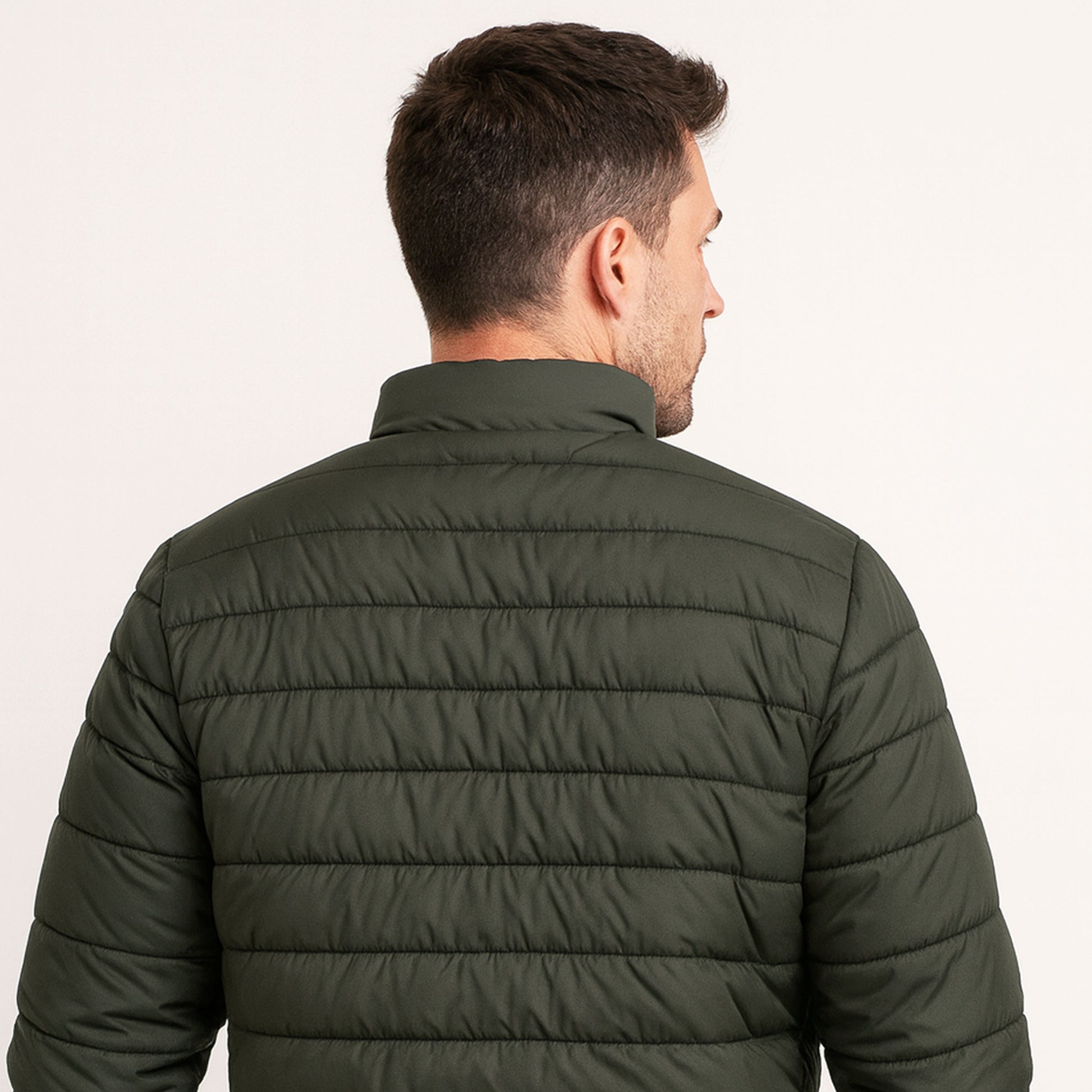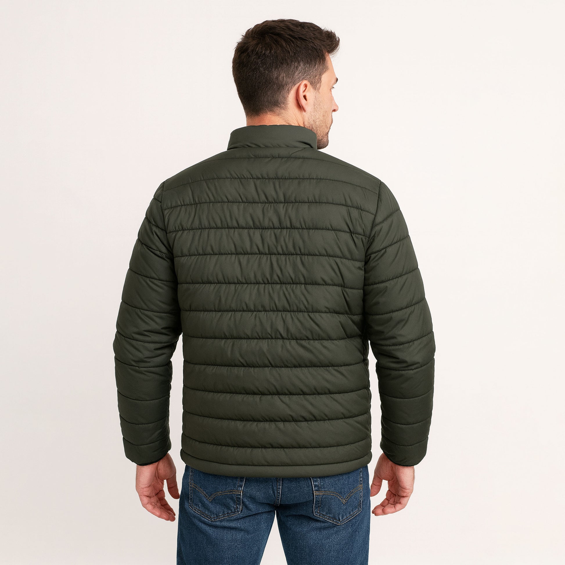 Men's Olive Green Zip-Up Puffer jacket