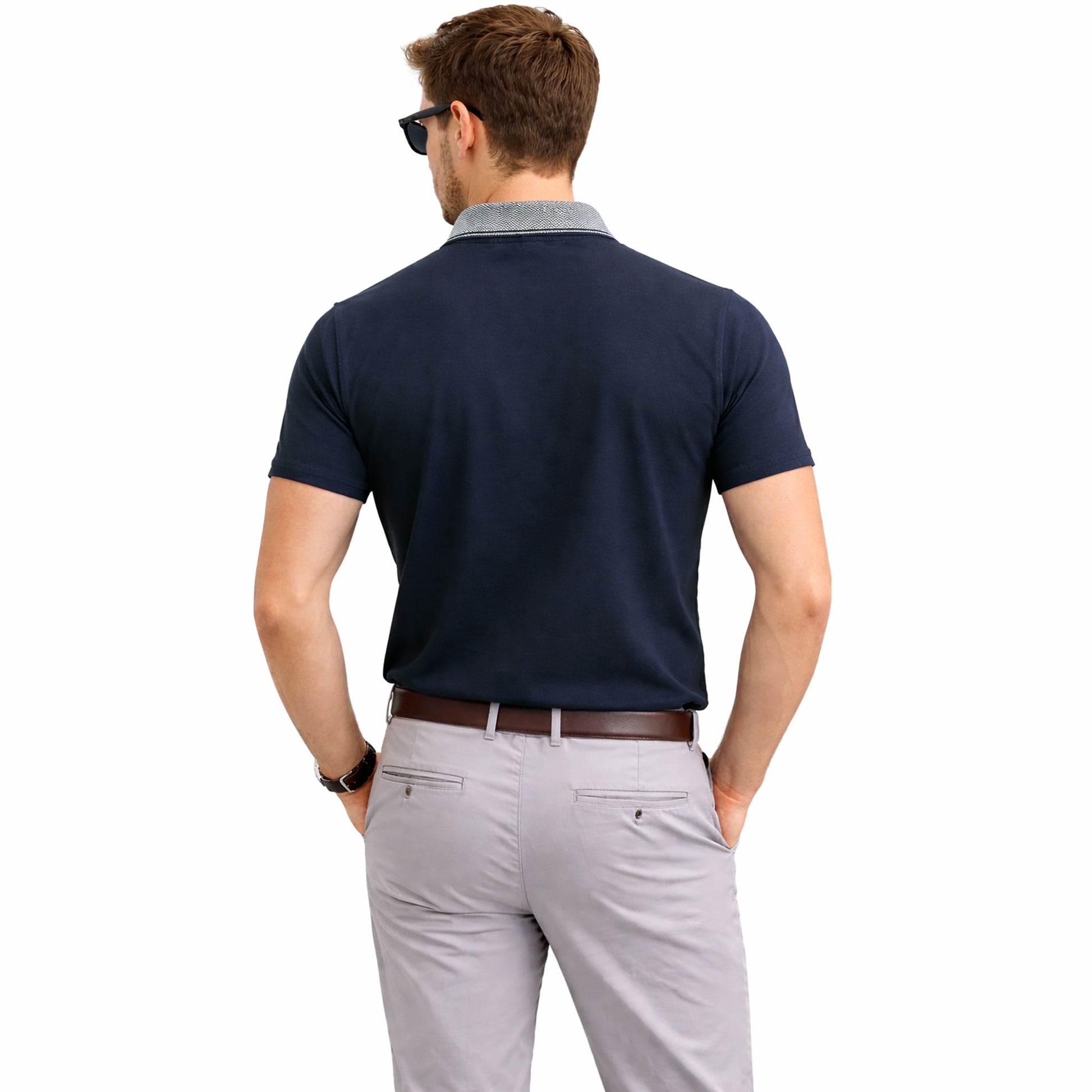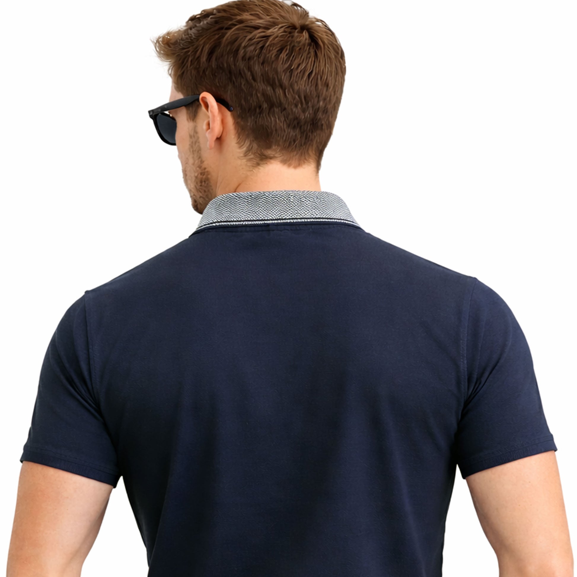 Make a statement with this contemporary slim fit polo shirt, designed with a distinctive contrast collar and intricate embroidered accents. The streamlined cut flatters your frame while delivering all-day comfort and style. Perfect for dressing up casual moments or keeping it relaxed, this versatile piece works beautifully with tailored trousers, shorts, or denim. An essential addition to any modern man's collection.