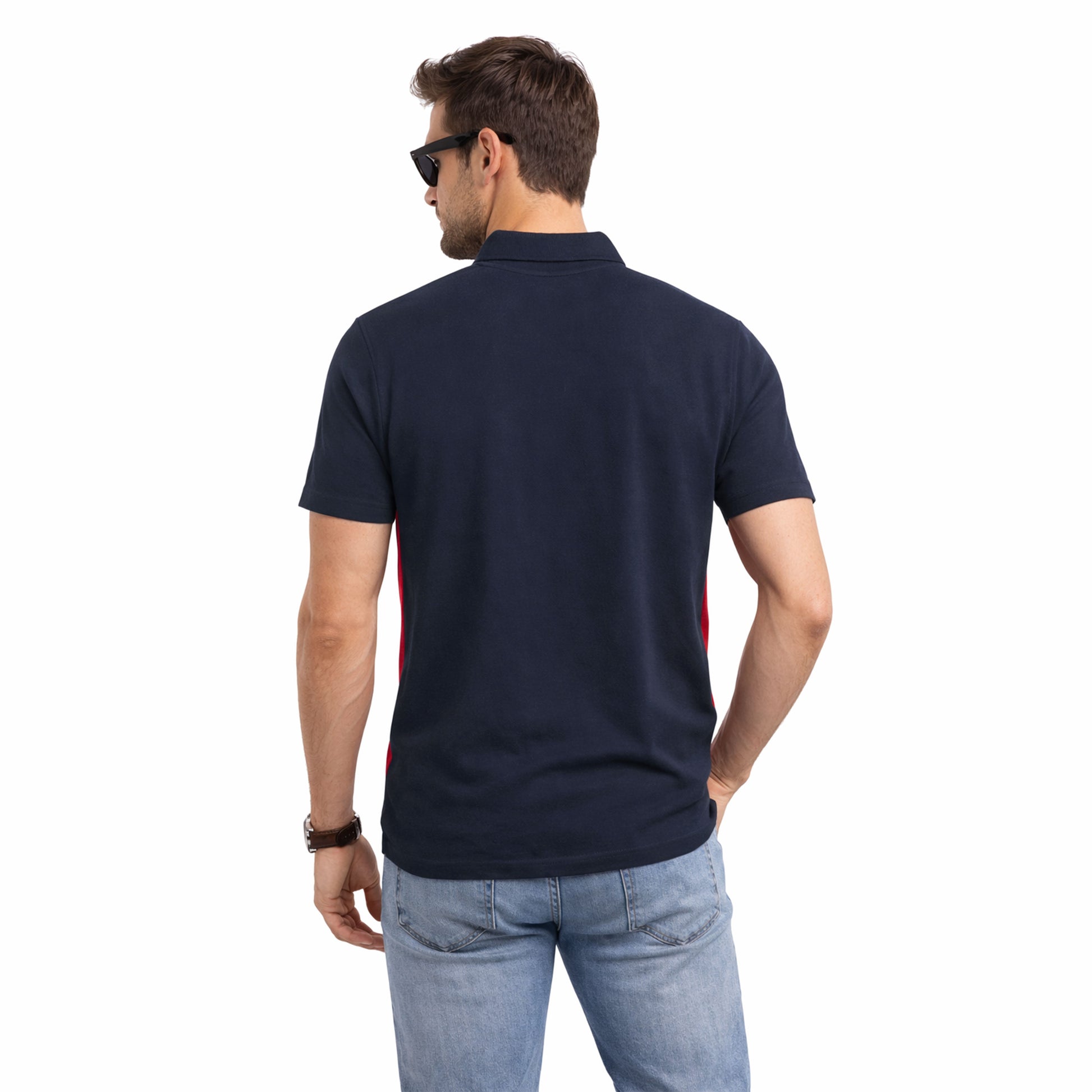 Elevate your casual wardrobe with this Men's Contrast Panel Polo Shirt, designed for modern style and comfort. Featuring bold contrast panels that add visual interest and dimension, this polo combines classic sophistication with contemporary flair. The structured fit flatters your silhouette while the breathable fabric keeps you cool throughout the day. Perfect for weekend outings, casual office settings, or layering over your favorite tee. Versatile enough to pair with chinos, jeans, or shorts, this essential piece transitions seamlessly from day to night.
