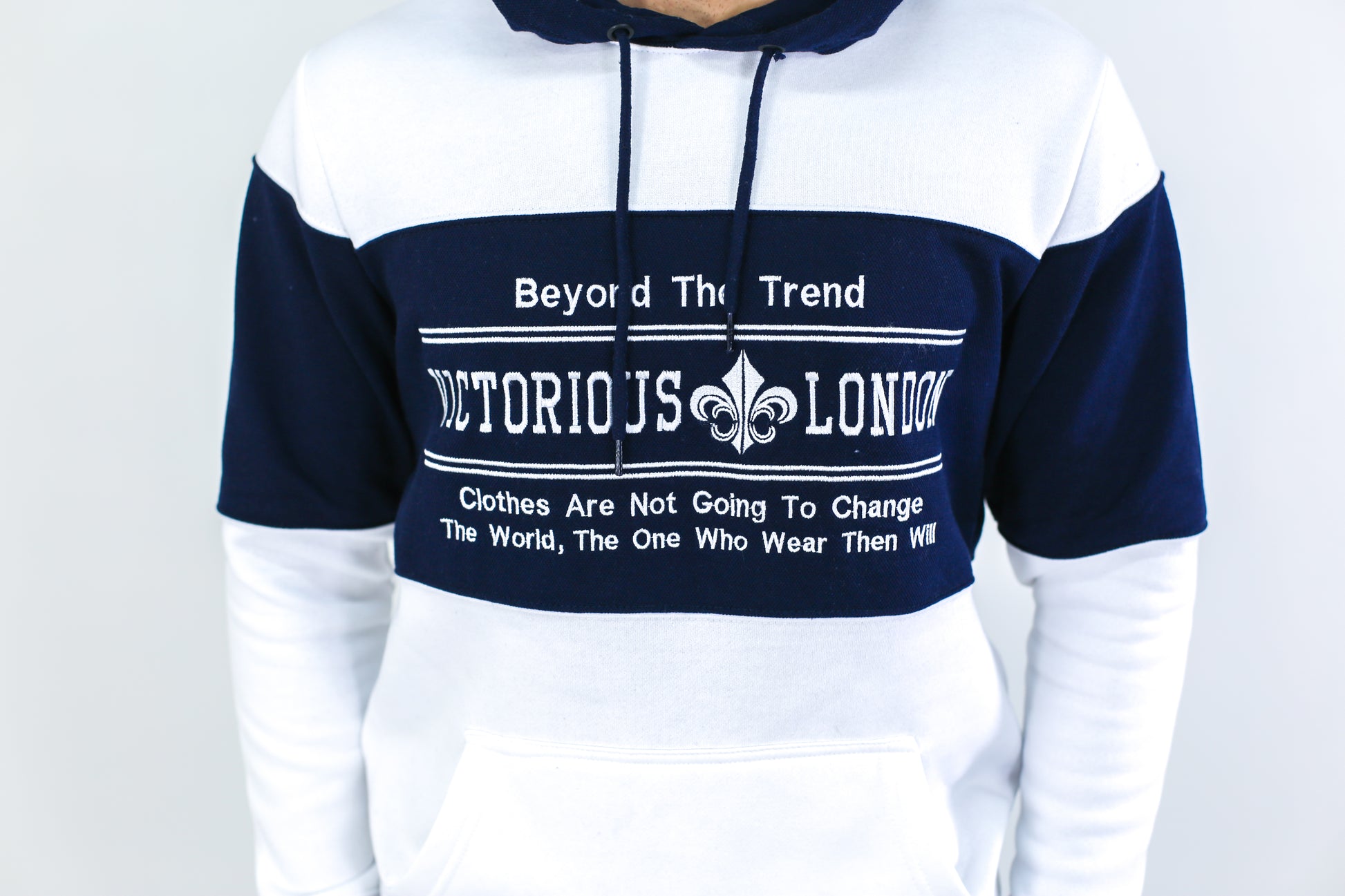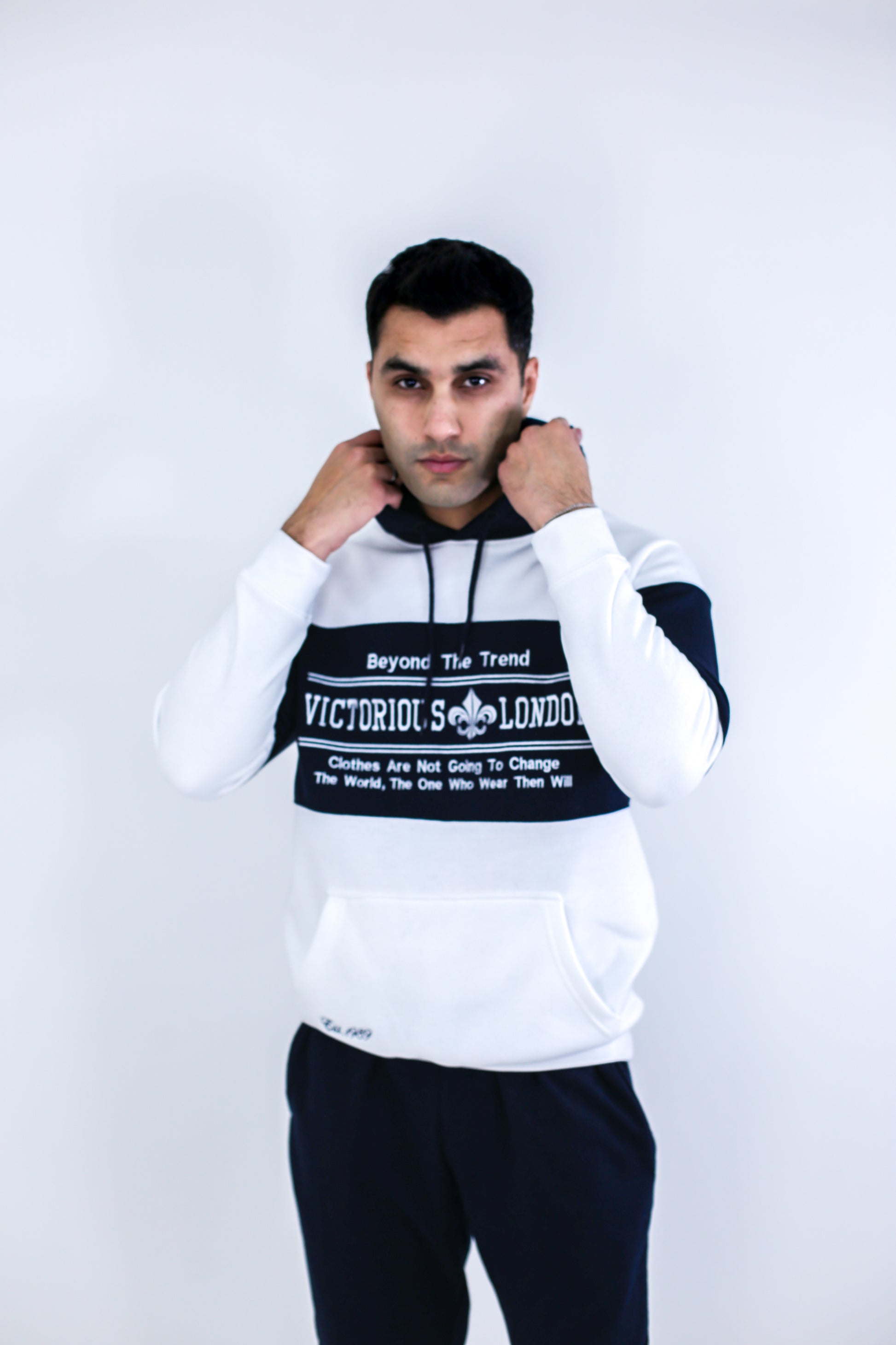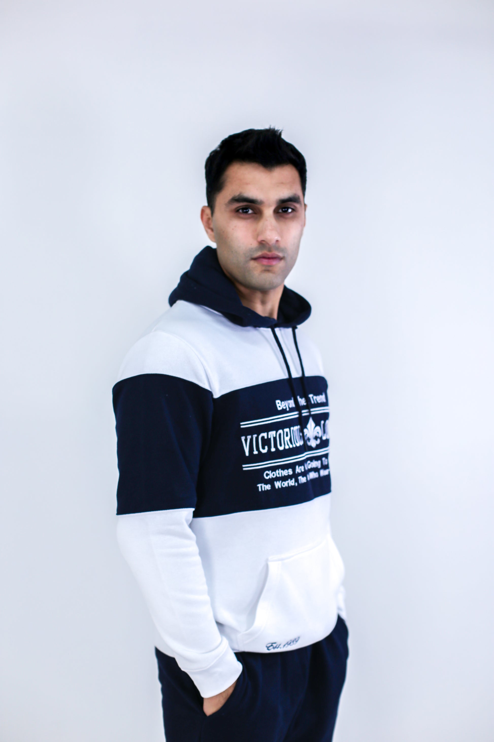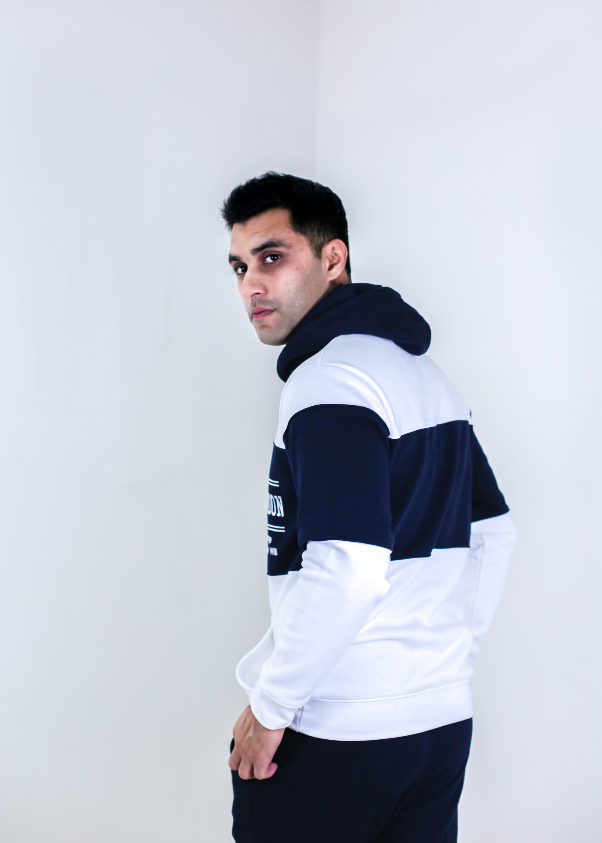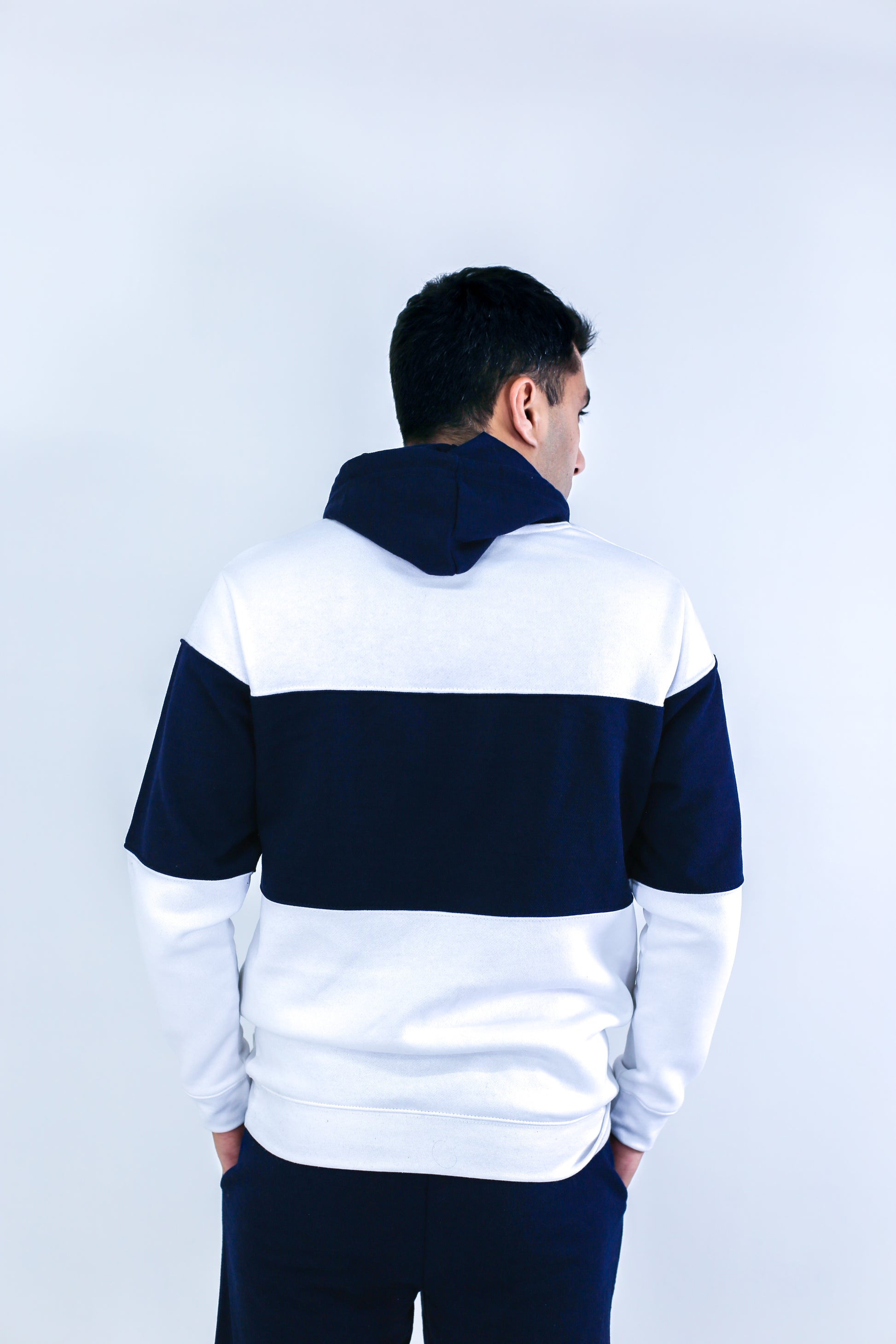 Elevate your loungewear game with this striking white and navy tracksuit that's anything but basic. Featuring bold contrast panels and intricate embroidery detailing, it's the perfect blend of comfort and style. Whether you're running errands or keeping it cozy at home, this two-piece set delivers effortless sophistication with a fun twist. The crisp color blocking makes it versatile enough to dress up or down, while the quality construction ensures it'll be your go-to favorite for seasons to come.