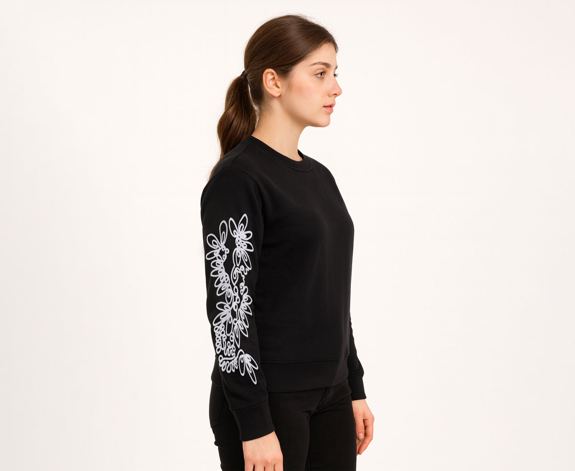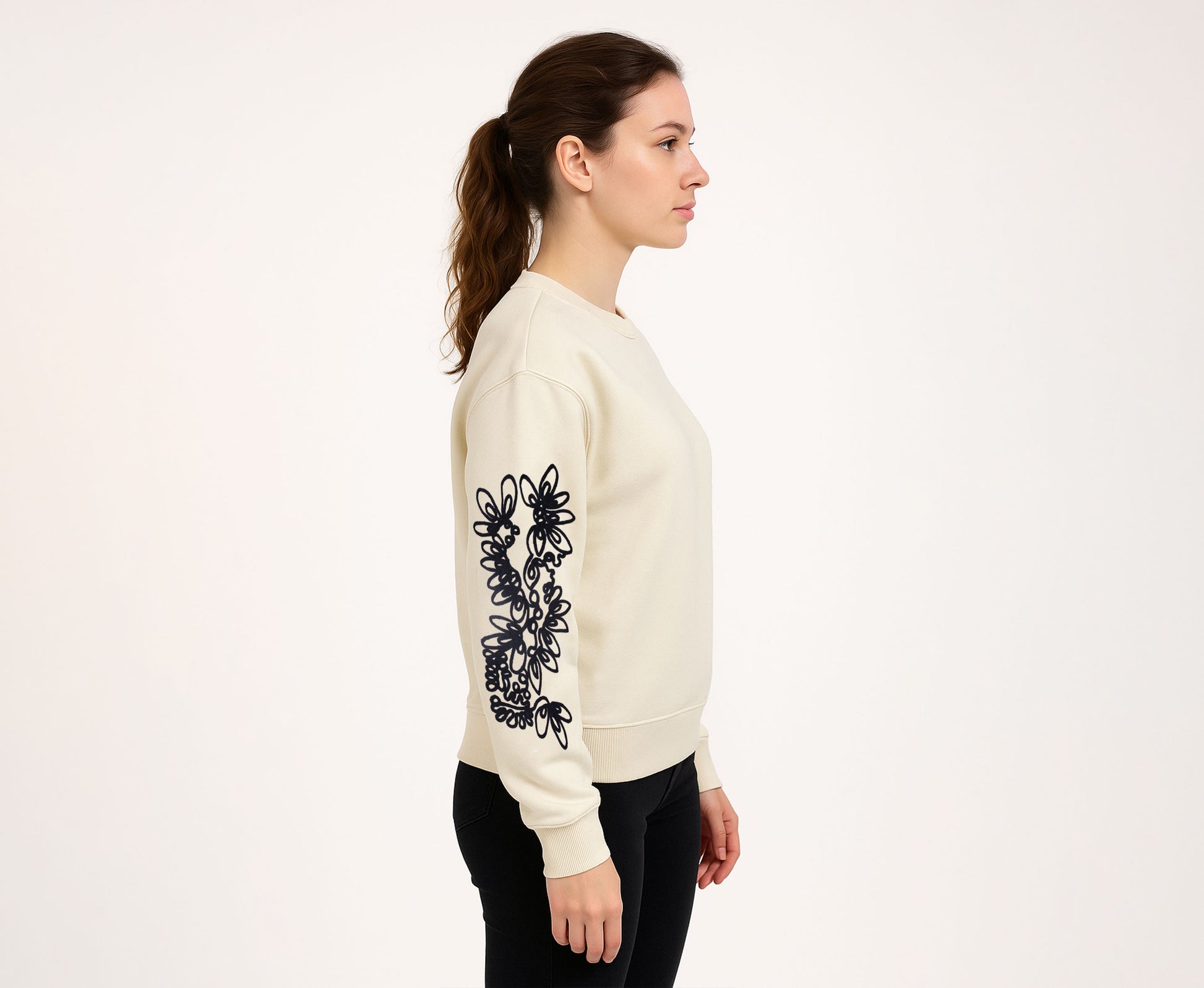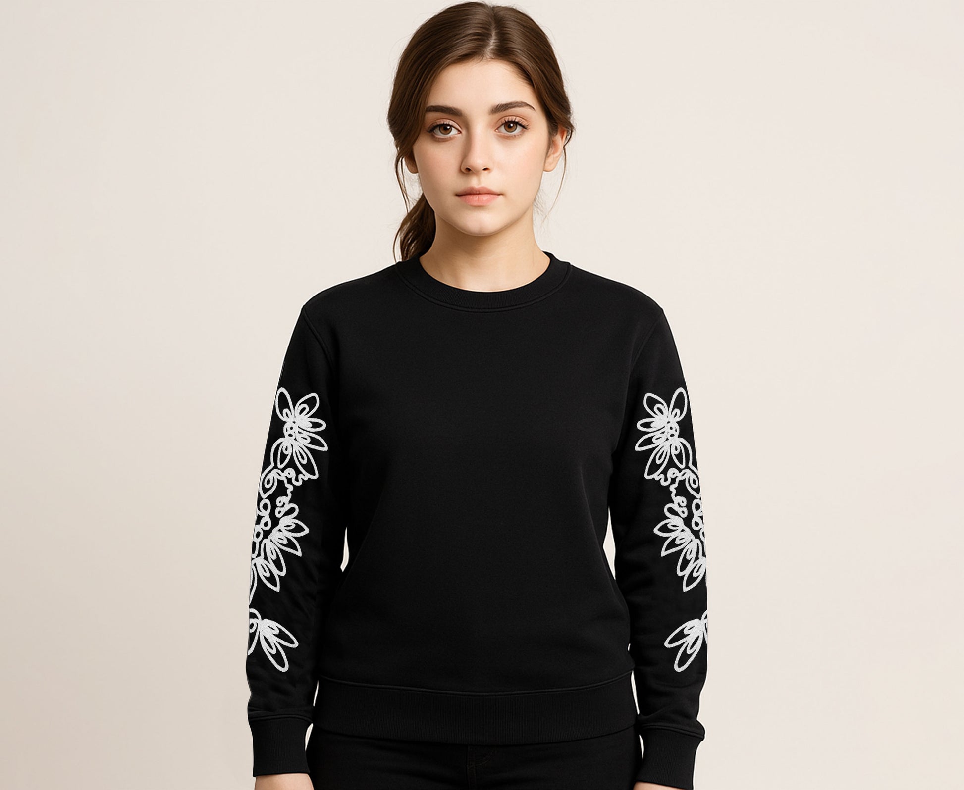 Add a fresh, playful vibe to your outfit with this women's floral embroidered crew neck sweatshirt. Featuring vibrant floral designs embroidered on soft fabric, it brings a cheerful touch to your casual style. Cozy and comfortable, it’s perfect for mixing and matching while staying effortlessly fun and feminine.