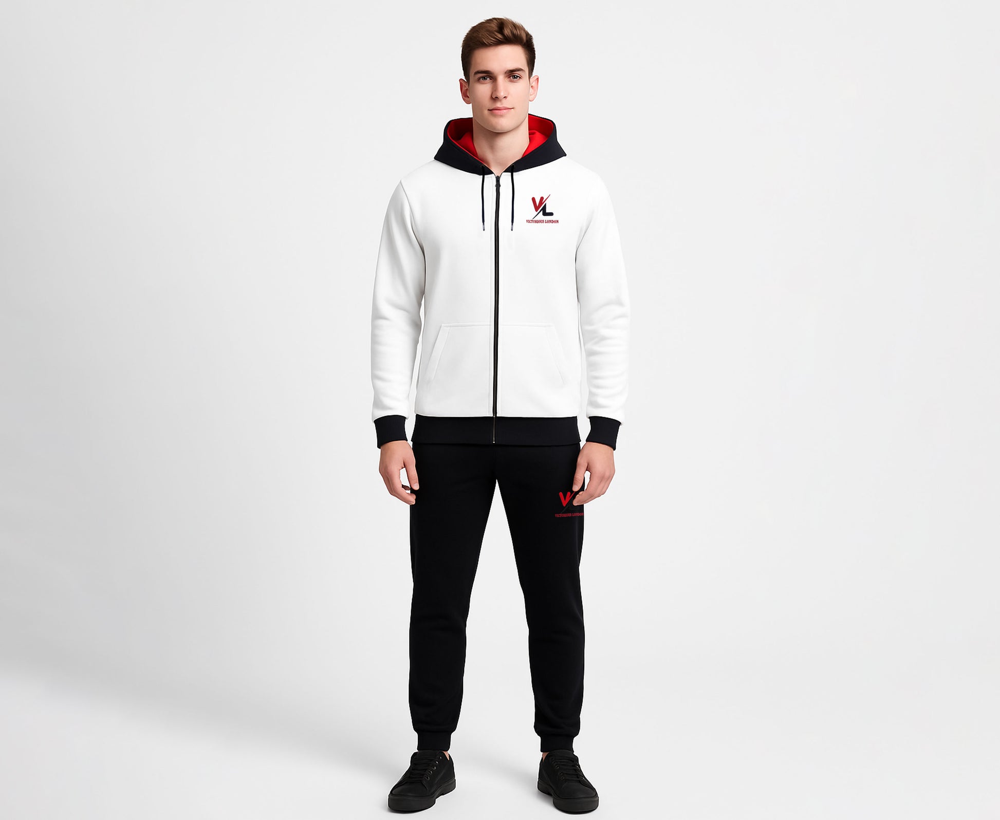 Zipper Hoodie Tracksuit with 2-Panel Front & Back Embroidered